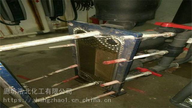 廊坊浩北化工有限公司公司根据客户的需求,经过多次试验,研究开发出一款换热器板片清洗剂。本产品改变传统的采用强酸为原料的工艺,转而采用独特的创新技术,能快速、完全清除水垢、锈渍等。本产品***、无害、无腐蚀,完全无酸雾和刺激性气味挥发。 使用方法:就地循环清洗方法和手工拆卸清洗方法两种 一:就地循环清洗方法:首先准备一套清洗循环系统,如耐酸泵、管道等。换热器板片清洗剂的量至少要等于换热器的正常工作量,若污垢粘度高,换热器板片专用清洗剂的量要相应增加。用泵将足量的换热器板片清洗剂持续循环性地输入换热器内部管道,持续时间不少于1小时,循环时间越长清洗越干净。根据污垢的严重程度可及时加入换热器板片清洗剂或更换,后排净内部残液【可用塑料桶储存重复使用】,用冷水或温水打入换热器内部进行管道循环冲洗,直至将内部残液完全冲净即可。 二:手工拆卸清洗法:首先根据换热器生产商的拆卸方法卸下换热器片,用毛刷或高压水枪将换热器片上浮锈的污垢用清水尽量冲洗干净【以减少药剂的消耗量】,然后将换热器片浸泡在存有药剂剂的塑料容器内(将换热器片上的密封垫卸下),浸泡时间不少于1小时。药剂由于浸泡次数的增加会降低其浓度和工作效率,此时可适当延长浸泡时间或增加、更换换热器板片清洗剂。浸泡时间的掌握一般以肉眼观察法观察原板片上深黑色污垢逐步变黄即表示污垢已溶解,即可开始冲洗。冲洗时高压水枪冲洗,直至污垢完全冲洗干净。若还有剩余污垢用毛刷刷掉。换热器片完全冲洗干净后晾干即可。 |