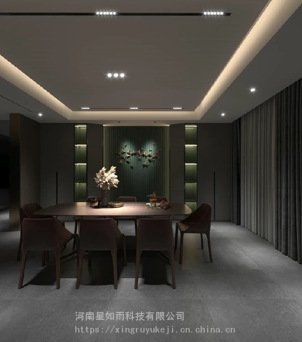 餐厅的我们可以设置几种场景,比如用餐模式,浪漫模式,还有我们的夜宵模式。 那么通过小爱同学,切换到用餐模式,然后所有的这个餐桌上方的这个灯亮度调整到***,整体的这个色调成4000k 也就说我们在家里面***的一个氛围。高显色指数的灯具可以让每一道菜,都可以在灯光下显得更有光泽感更有食欲。