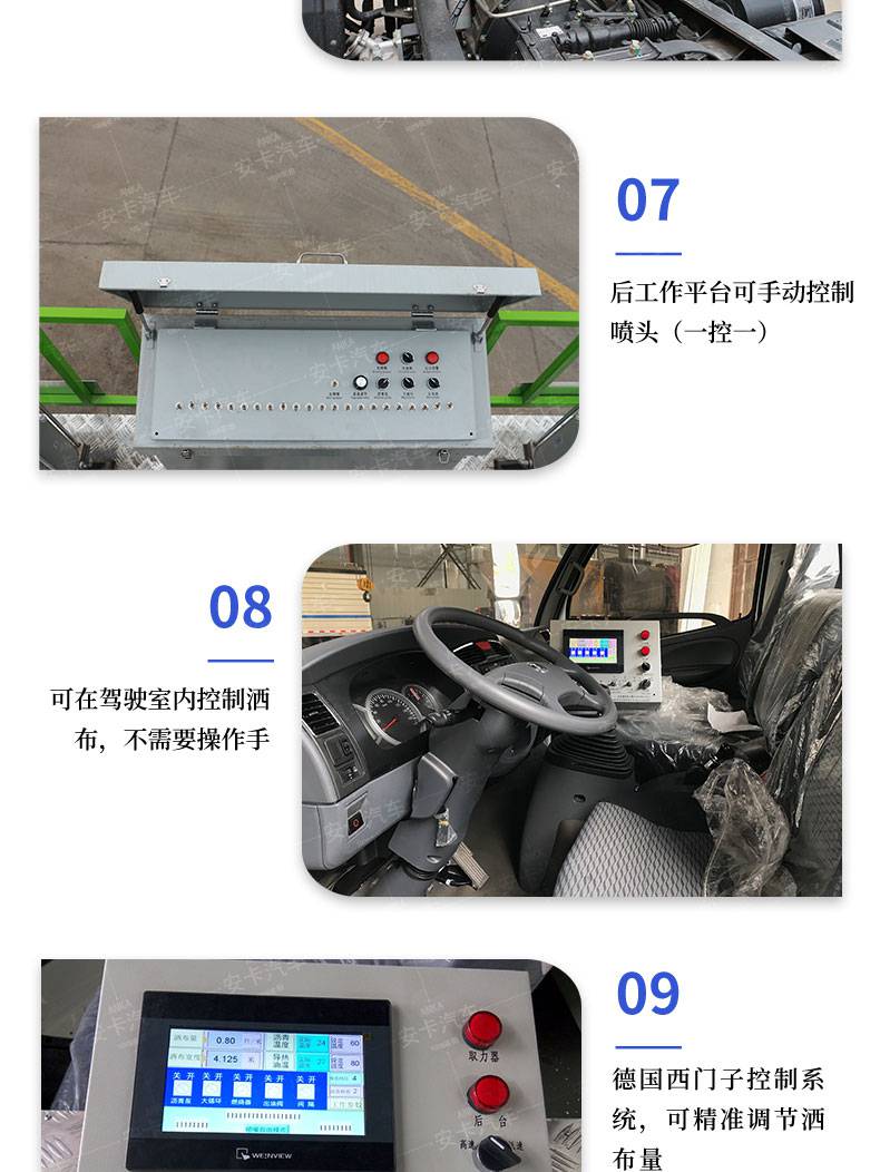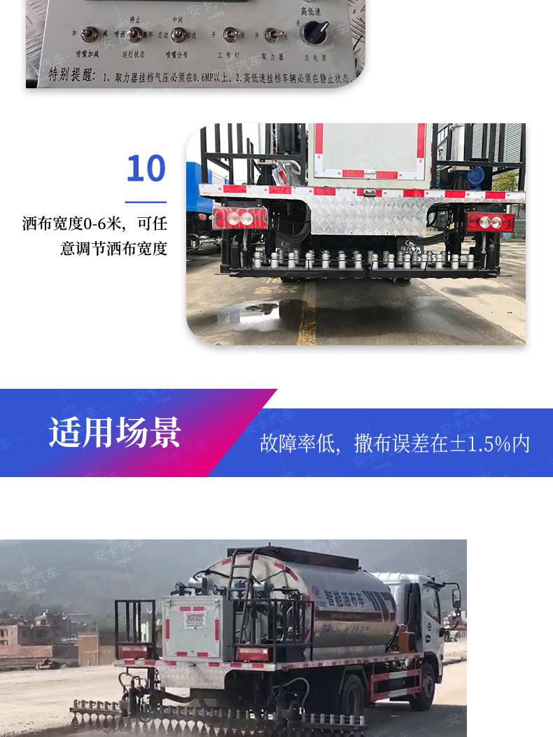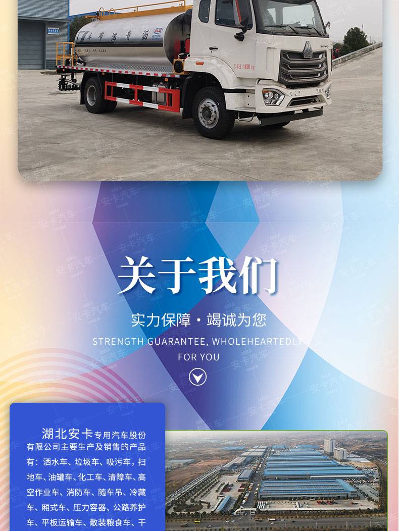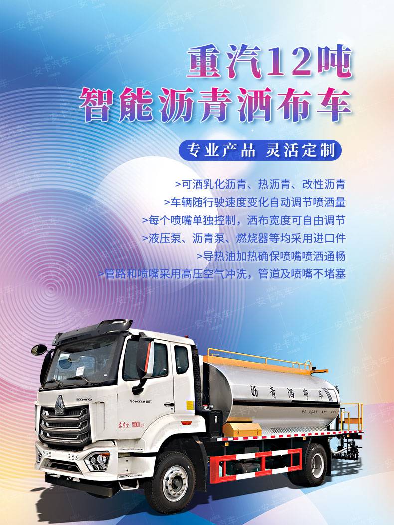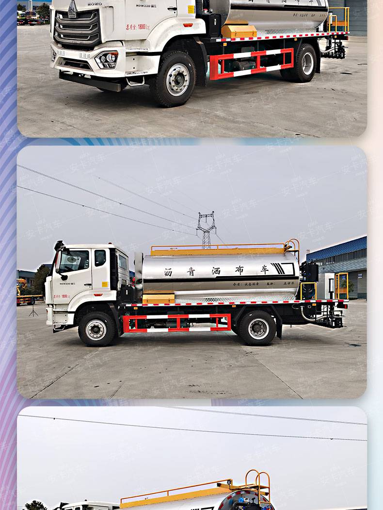 1、重汽11吨(方)沥青洒布车沥青路面综合养护车是指装备有保温容器、沥青泵、加热器和喷洒系统,用于喷洒沥青的罐式专用作业汽车;也可以定义为一种喷洒热态沥青、乳化沥青、渣油等液态沥青的路面施工机械;可广泛应用于公路、城市道路、机场、港口码头和水库等路面施工;大容量的沥青洒布车也可作为沥青运载工具,主要用于沥青贯入法表面处治、透层、粘层、混合料就地拌和、沥青稳定土等施工和养护工程。 2、重汽11吨(方)沥青洒布车沥青路面综合养护车按照移动方式,可分为拖行式(挂车式)和自行式2种。拖行式是将沥青罐和洒布系统都装置在挂车底盘上,由牵引车牵引作业;根据沥青罐容量不同,有单轴、双轴和三轴之分。自行式是将沥青罐及洒布系统安装在同一汽车底盘上,是常用的一种,又有车载型、专用型之分。上述沥青洒布车具有加热、保温、洒布、回收及循环等多种功能,可根据底盘载重质量确定沥青罐容量。沥青罐容量一般在1500~18000 L范围。