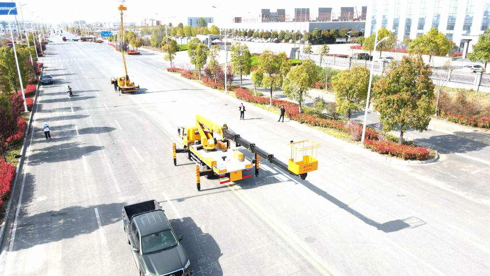 2、江铃20米升降高空作业车设计的三维旋转托举装置,既能够自动保持被举升物料的姿态,又可以实现举升物料在空间内任意高度、任意位置和任意方向的调整要求,速度控制灵敏,微动性能好,满足了大型洞库内高空作业与通风管道安装的要求。 |