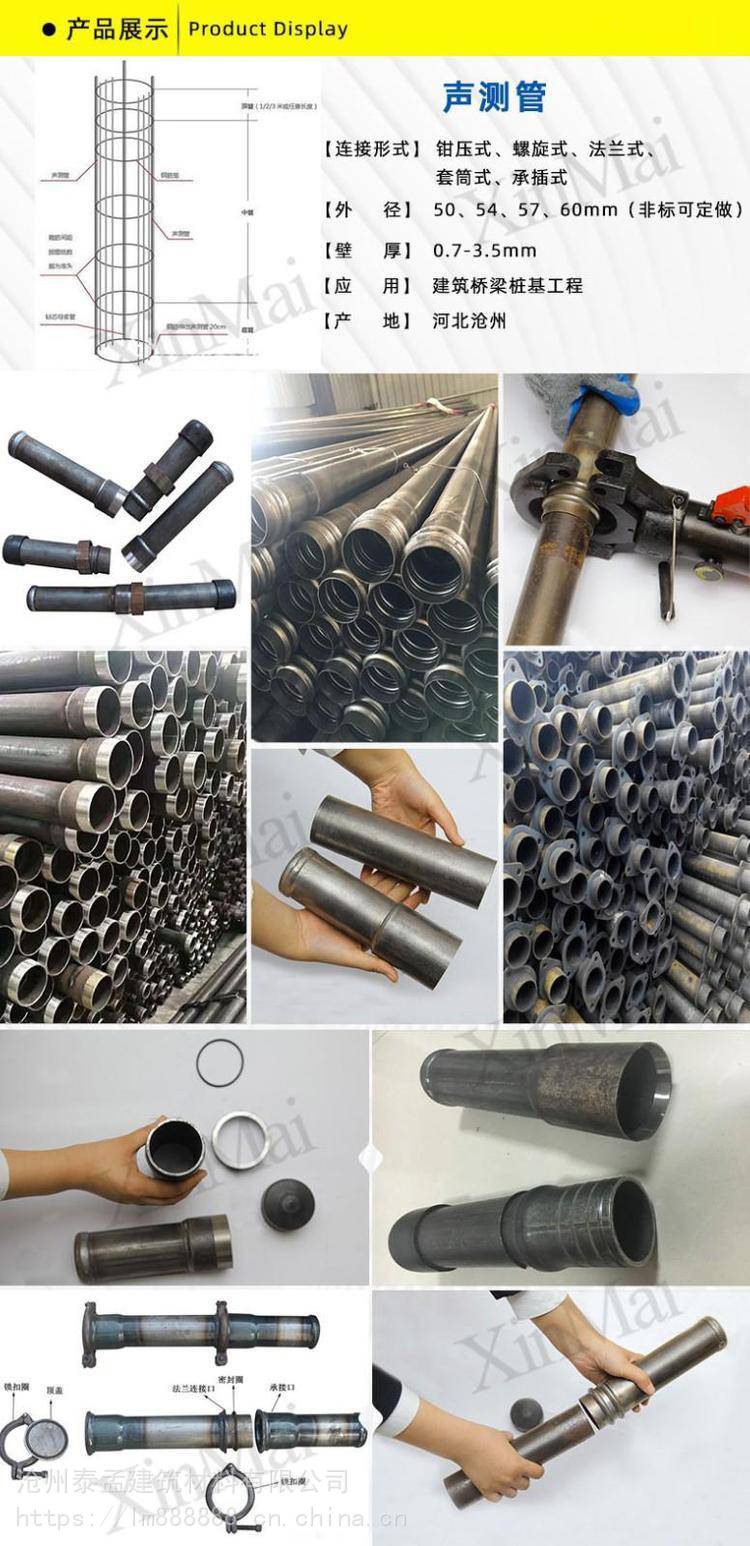 声测管:钢管的一端带有外丝管件,另一端有可转动的内丝,中间用密封圈进行密封。此种连接形式适用于各种厚壁声测管的连接,可根据项目的桩基及钢筋长度设定声测管长度进行加工配送,现场连接简便快捷。 成本低:在常规设计中一般要求采用外径50-60mm的钢管,厚度在3.0mm左右,施工中使用外加套管现场焊接,采用这种方法所需成本较高。使用我公司生产的螺旋式声测管的施工成本只占普通焊接施工成本的60%左右,大大降低了施工成本。 超便捷:采用螺旋式连接,安装每个接头用时不到一分钟,大大节约了工时且无须任何技术支持。不需工地以外的准备工作,不需任何设备,简单快捷,容易固定于钢筋笼架、不受恶劣天气的影响。 安全性高:我公司生产的声测管均需通过三检测工序(即初检、气检、水检),出厂产品合格***,从而***产品满足施工技术需要。产品连接后表面凸起较少(大凸起<8mm),***减少了混凝土的阻流,降低了与基础导管、振捣器的碰撞风险。 使用操作步骤: 一、准备底管:将底管拿出放在地上,检查密封圈是否完好,管身是否有裂缝,低堵是否焊接完全。 二、中管连接:将中管拿出插入底管,直到插到底管底部为止,然后把螺旋紧固即可。接好后把声测管放入钢筋笼内,按规定尺寸紧固在钢筋笼的主筋上,对于没有钢筋笼的部位用钢筋支架固定或加固三根主钢筋,捆绑距离不得大于两米。 三、向钻孔内下放钢筋笼声测管的安装方法:声测管底管下入钻孔后,在声测管内加满清水,然后焊接***节钢筋笼,焊接完毕,把上面的声测管用手托起插入下面声测管的承口端,用螺旋紧固即可。然后下放钢筋笼每到两米时需用铁丝把声测管绑扎在钢筋笼主筋上,***节钢筋笼下放完把声测管内加满清水。等顶节钢筋笼下放完后,一定把管内加满清水,后用管帽(盖子)盖好。 需注意事项: 一、查看密封圈是否完好。 二、螺旋必须紧固到位。 三、不要把电焊钳、搭铁线接触到声测管,以免焊接时电焊强流造成声测管破漏。 四、声测管安装完毕后一定要加满清水,并用盖子盖好,严禁管内进入混凝土或水