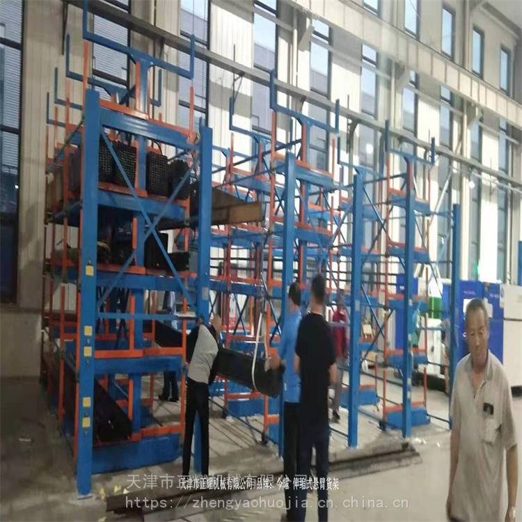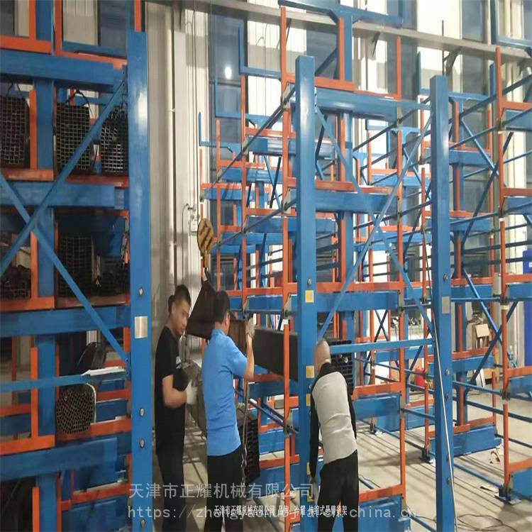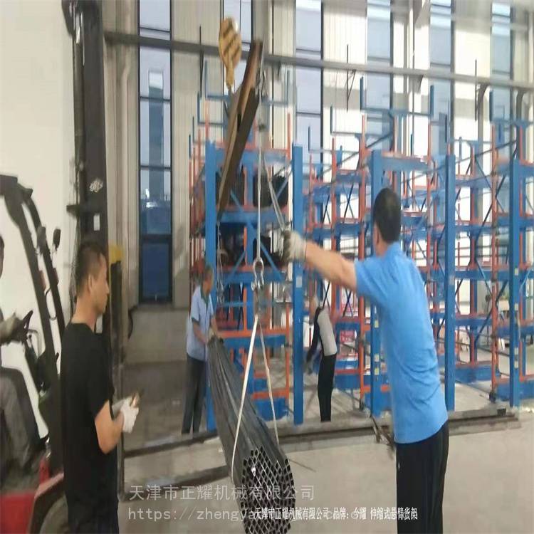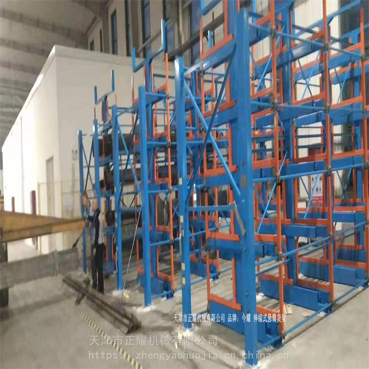 7月19日 在北京一企业现场,工人正在使用伸缩式悬臂货架存放钢材 伸缩式悬臂货架,是一种悬臂层可以左右伸缩调节的高承重货架,用来存放各种钢材,型材,棒料,长轴,圆钢,管材,铜棒等长货物 货架多层多货位设计,存储量大,而且承重也大,利用天车进行材料的上架或取用,不用叉车,节省空间,而且分类分货位单独存取管理,钢材上架后,库存材料一目了然,盘点方便
