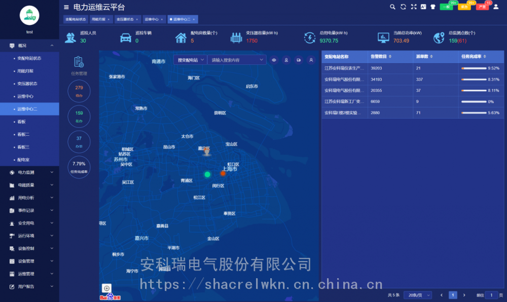 AcrelCloud-1000电力运维云平台:开启电力系统“无人值班、少人值守”新模式吴柯霓 安科瑞电气股份有限公司 上海嘉定 摘 要:随着***改革政策的逐步推进和落实,电力行业及其衍生的电力运维行业的关注度越来越高,而传统的电力系统维护方式已渐渐不能跟上时代的脚步,市场正在不断地发展扩大。我司AcrelCloud-1000电力运维云平台通过信息化手段,结合大数据技术和专业电力知识,为运维公司、售配电公司、医院和学校等行业提供完善的电力监控与管理方案。该平台基于B/S架构,有配套使用的App应用。云平台实时监视用户配电系统的运行状态和电量数据,通过经验丰富的运维团队和成熟的技术来为用户提供更好的运维服务。云平台提供用户概况、电力数据监测、电能质量分析、用电分析、日/月/年用能数据报表、异常事件报警和记录、运行环境监测、运维派单等功能并支持多平台、多终端数据访问。 关键词:电力运维;运维平台;用电分析;环境监测;多端访问;事件报警 1 引言 新电改要求是“三放开一独立三强化”:输配以外的经营性电价放开、售电业务放开、配电业务放开、公益性和调节性以外的发供电计划放开,交易平台独立。本次电改将有利于还原电力的商品属性,实现电力交易市场化,从而激发电力企业的市场活力,重塑电力工业价值链,并将带动售电、运维、用能管理、新能源接入等业务的发展。 电力运维云平台旨在为拥有变配电站产权的电力用户,其中包括但不***于工商企业、住宅小区、医院、工厂、学校及大型办公楼等等用户提供线上电力运维服务,实时监测变电所用电情况、统一调度运维巡检安排,实现线上线下的联动。 2 市场现状 全球范围内城镇化、数字化和工业化进程的加速与电力政策的改革带来了能源挑战,不断增加的电力管理需求冲击了电力企业传统的运维模式。而电力运维云平台针对传统运维模式存在的任务效率低、巡检不规范、仪表难管理、无法远程监测、人工成本高等难点痛点进行改进优化,深度融合了电力运维行业各业务环节,规范监测了变电所运行环境,简化了巡检流程,减少了运维成本,提高了运维效率。 3 产品方案 AcrelCloud-1000电力运维云平台是一款采用现代互联网通信技术、云计算、大数据分析等流行技术开发的变电所综合运维监控平台。云平台通过高算力边缘计算网关将智能仪表与传感器采集的数据进行统一化、标准化处理后以有线/无线的网络传输模式上传到云服务器统一存储,并通过平台实现对电能在线实时监测、用能情况分析、设备的精益管理、任务的合理调度、月度报表展示等功能,以此来达到帮助用户分析变电所运行环境,减少故障停电时间,保障电网稳定供电与设备安全运行的目的。 AcrelCloud-1000变电所运维平台采用分层分布式结构进行设计,平台可以部署在用户购买的硬件服务器上,也可以部署在用户租赁的云服务器(如阿里云、腾讯云、华为云等)。详细拓扑结构如下: