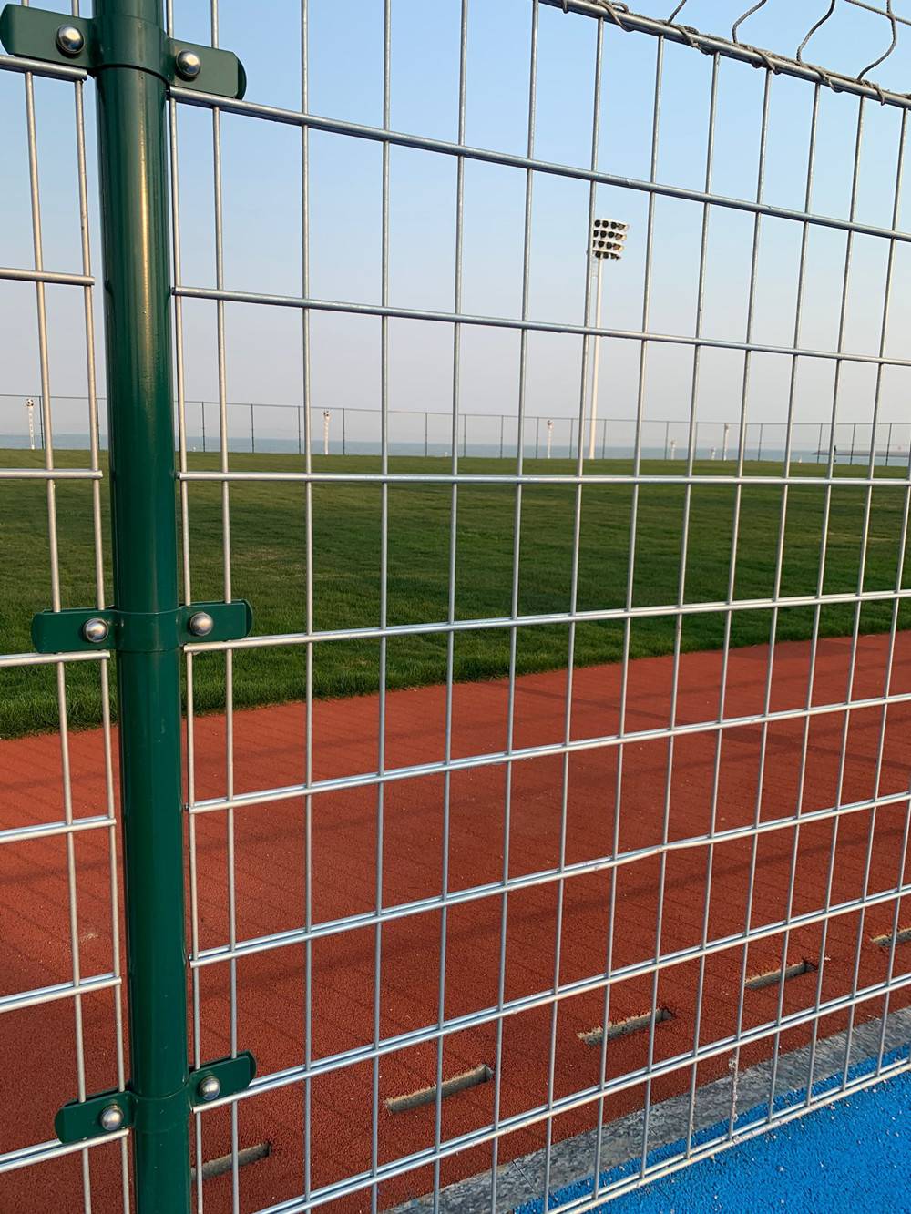 场地围网、拼装式场地围网、焊接式场地围网、笼式场地围网 我公司是一家生产体育围网的厂家,我们---的技术,、 种:由焊接网片、尼龙绳网组成的笼式足球场围网 1、立柱:75x2.5mm镀锌钢管; 2、边框分为上下边框,网子采用两种,上面采用编织网,下面采用钢丝焊接网,篮球场围网施工方案,边框采用48mm*2.5mm镀锌管; 3、焊接网:50mm*100mm*7mm;编织网:50mm*50mm*4.3mm; 4、连接件:采用弧形圆角设计,厚度5mm; 5、防腐处理:热浸塑处理; 6、颜色:墨绿色、草绿色、白色等。 ***种:由双夹丝网片、勾花网和尼龙绳网组成的笼式足球场围网 1、立柱:75x2.5mm镀锌钢管; 2、采用868双夹丝焊接网片或656双夹丝焊接网片; 3、编织网:网孔50mm*50mm,丝径大于4mm; 4、防腐处理方式:可以是热浸塑也可以是静电喷涂或浸塑处理; 5、产品常选颜色:绿色、白色、蓝色、黑色、黄色等。 第三种:由铁链条网片、勾花网和尼龙绳网组成的笼式足球场围网 1、立柱:75x2.5mm镀锌钢管; 2、铁链直径:常用为4.0mm和4.2mm,足球场围网施工方案,网孔为100mm*100mm的正方形网孔; 3、编织网:网孔50mm*50mm,丝径大于4mm; 4、防腐处理方式:可以是热浸塑也可以是静电喷涂或浸塑处理。 第四种:有包塑勾花网和尼龙网组成的笼式足球场围网 1、立柱:75x2.5mm镀锌钢管; 2、横梁:6ox2.0mm镀锌钢管 3、勾花网:丝径4.0mm 4、编织网:网孔50mm*50mm,丝径大于4mm 5、防腐处理方式:可以是热浸塑也可以是静电喷涂处理 6、颜色:一般一墨绿色居多
