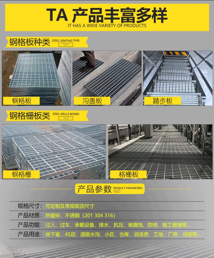 镀锌钢格板 防滑不锈钢平台钢格栅 踏步板重型格栅板 批发钢格板应用于石油化工、电厂、水厂、污水处理厂、环卫工程等领域。钢格板常常做成平台、走道、栈桥、沟盖、井盖、梯子、围栏、护栏等。我厂钢格板产品种类众多,可根据客户要求的不同环境,不同承载力、跨度、形状和颜色以及成本造价,为客户设计.¥ 117.00/平方米 | 点击购买