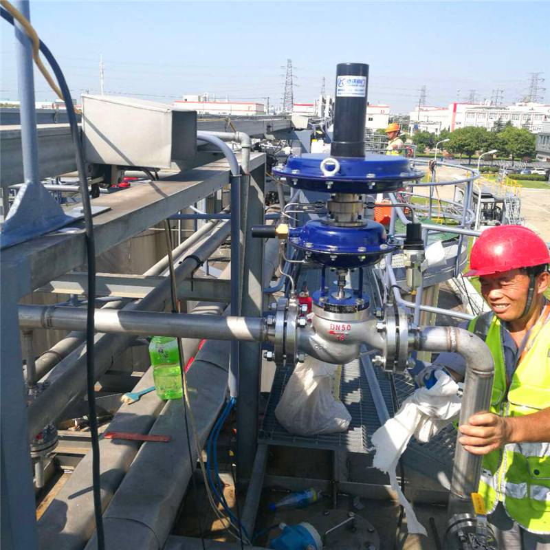 内浮顶涂料储罐氮封系统改造应用案例 氮封阀关闭,停止氮气供应;当气相空间压力低于0.5KPa时,氮封阀开启,开始补充氮气,***储罐在正常运行过程中不吸进空气,防止形成爆炸性气体。储罐氮封系统装置使用的氮气纯度不宜低于99.96%,氮气压力宜为0.2~0.6MPa。当罐内压力超过1.1KPA(G)时,泄氮阀工作,确保罐顶压力低于1KPA(G). 氮封装置示意图中,贮罐内成品液上端覆盖氮气(作用:防止罐内液体制品,挥发液等直接接触空气,避免挥发,变质,***质量),通过氮封装置控制,可比较方便实现此功能。 物料出口阀开启放液时,贮罐内液位下降,气相部分容积增大,氮气压力下降低于设定值,此时, ZZYVP-16B供氮阀开启工作,向罐内补充氮气,使罐内压力增加至设定值,供氮阀自动关闭。同样,进液阀开启进液时,液位上升,气相部分容积减小,氮气压力上升,若压力超过设定值,ZZVP-16K泄氮阀自动开启泄压,直到压力降至设定值,泄氮阀自动关闭。天邦涂料股份有限公司始建于2005年,是一家集研究、开发、生产、应用为一体的高科技企业。它是江阴市低碳产业17家重点骨干企业之一,并被列入江阴风电装备产业基地中小型骨干企业名单。公司建筑包括一座***涂料工厂、一个涂料技术中心和一个涂装应用中心。2008年公司被授予江苏省民营科技企业称号。2009年起先后与南京工业大学材料学院、中国科技开发院江苏分院、江苏康润净化科技有限公司、东南大学、中国科学技术大学、江南大学等进行了紧密的产学研合作。