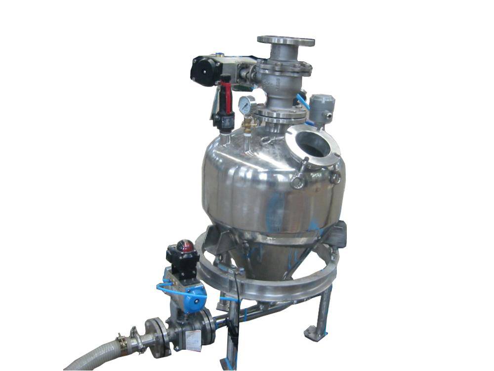 气力压送罐是气力输送系统中最常用,性价比较高的一种正压输送设备,通常用于长距离分批投料式系统,它适用于高压,长距离,高固气比条件下,各种易碎和磨蚀性及非磨蚀性物料的输送。如石英砂、塑料粒子等。整个输送系统由压力容器(压送罐)、电控系统、与输送管线共同组成。 原理 在进料过程中,物料通过双蝶阀或膨胀式蝶阀被加进发送罐中,置换出的空气通过排气阀释放出去,使得进料更加容易,同时也消除了阻碍物料流动的反向压力。当发送罐被装满时(通过料位计显示,达到罐容积的 90%)进料阀门与排气阀门同时被关闭并密封,而后通过进气阀向发送罐顶部加入压缩空气,加入的压缩空气与物料相混合,当罐内的压力达到设定值时便自动打开底部出料阀,此时便向整个输送管线施压,然后物料以柱塞状形式输送,直至物料排空。当发送罐内压力降为零时气力供给即被关闭,同时少量剩余的气体也被排出发送罐和输送管线。