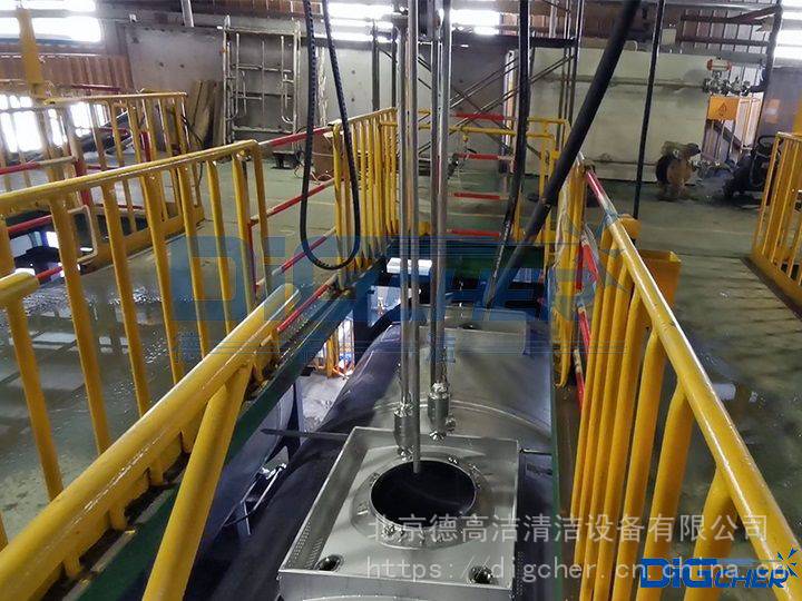 德高洁从事高压水射流行业二十多年,拥有多年的研发经验,多款自动清洗系统应用于工业清洗领域。对于油罐车的清洗,我们有德高洁自动化罐车清洗系统,采用超高压3D三维容器清洗器,高压水自驱动完成立体球面轨迹扫描,可以实现封闭容器的全方位扫描清洗,运行多个周期后,罐内清洗没有死角。再配以“升降开合”机构,可以近距离完成罐内高压清洗,罐内疏松锈蚀全部可以清理掉,紧密层的锈蚀也可以清理掉96%以上。 油类物质具有危险性,而且具有污染性,对石化罐车清洗后的残渣和废水不能随意处理。德高洁罐车清洗系统强大的抽排机构可以将清洗污水及清理下来的大量锈蚀及时收集、归纳、吸走,罐内很少有残留,基本不用人再下罐。