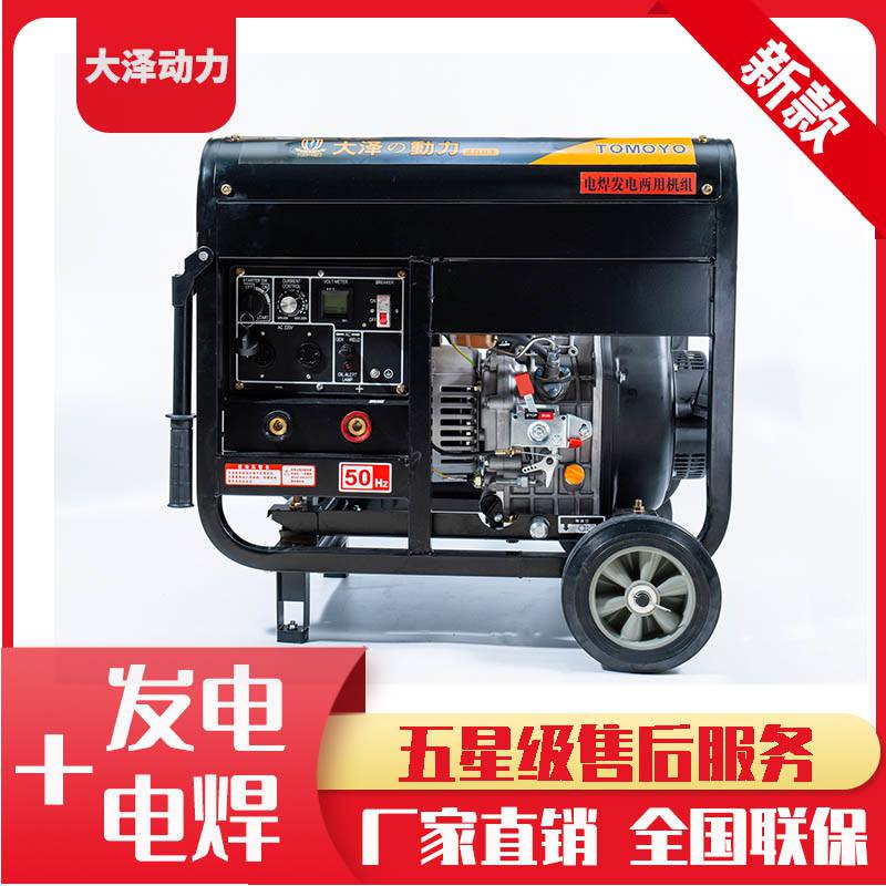350A柴油发电电焊机 大泽动力 TO350A 大泽发电焊机特点: 1)、该机既可用于手工纤维素下向焊(特别适合焊接6010和7010焊条)、手工氩弧焊,又可用于手工普通焊。 2)、过流、过热、过欠压、缺相多重保护; 3)、电弧燃烧稳定,熔池平静、焊缝成形好; 4)、易起弧、飞溅小、无噪声、效***; 5)、推力/引弧电流可调、长弧/短弧可选; 6)、电流/电压数显并预置电流; 7)、体积小、重量轻; 8)、采用稀土永磁发电技术,故障率低,可大功率输出单相和三相电源,更大程度的满足了现场施工用电需要。 9)在方便接电源的地方可外接电源使用