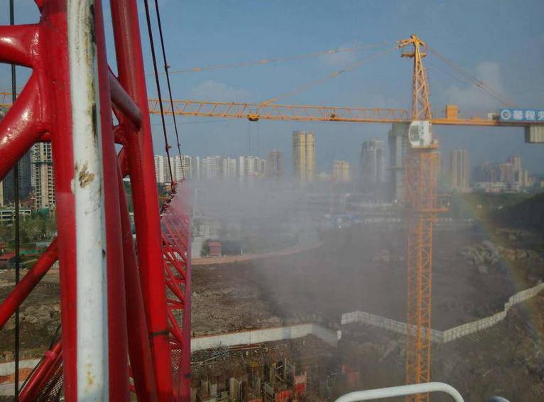 塔吊喷淋系统特点 1、覆盖面积可根据塔吊大臂长度自由设置; 2、喷淋效果可根据实际需求自由调节喷淋流量控制; 3、喷淋湿度可自主调整喷淋时间控制; 4、能让控制区域湿度***持续30分钟,达到除尘减霾的效果; 5、能让控制区域湿度50%以上持续3个小时,达到尘土不能生长,霾不能蔓延的效果。 6、输水设备可循环多系统共用,降低运营成本。