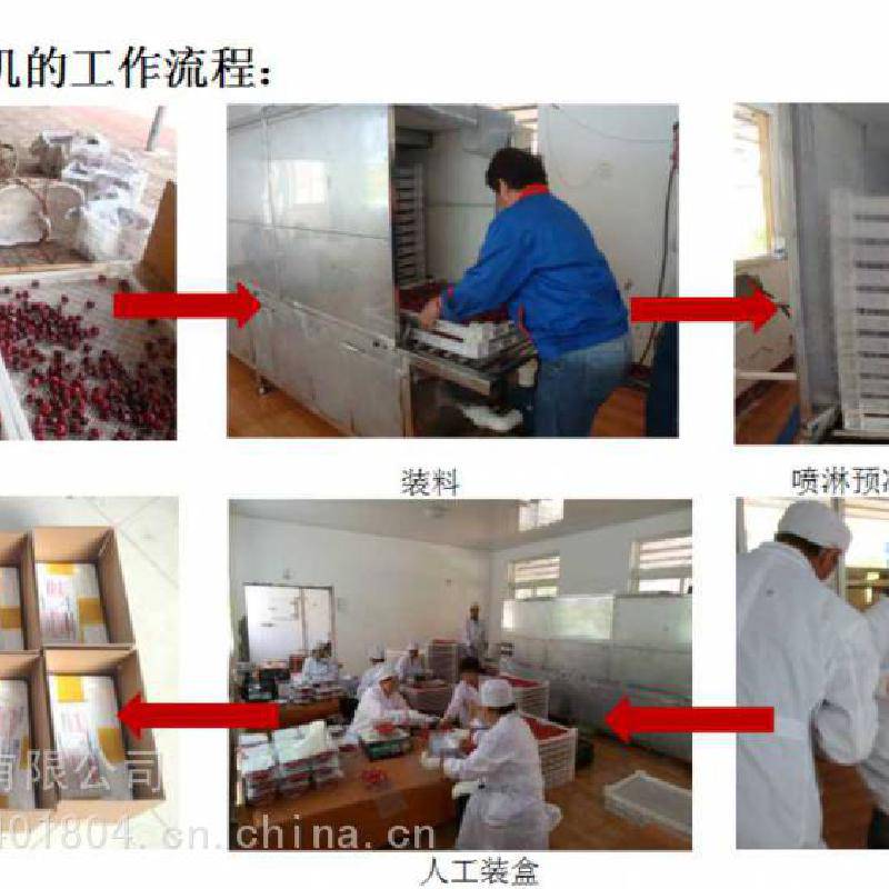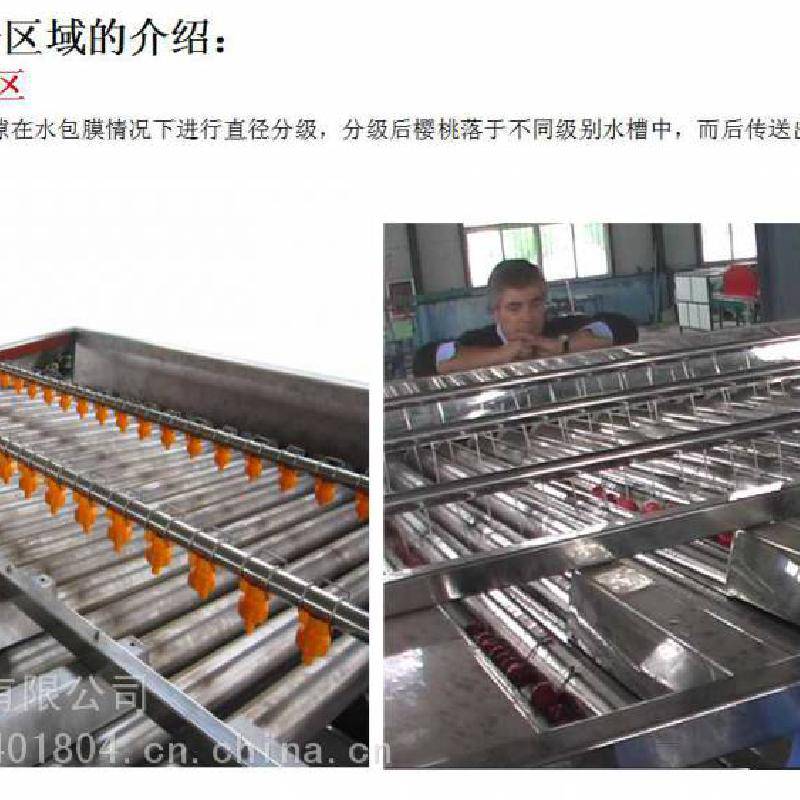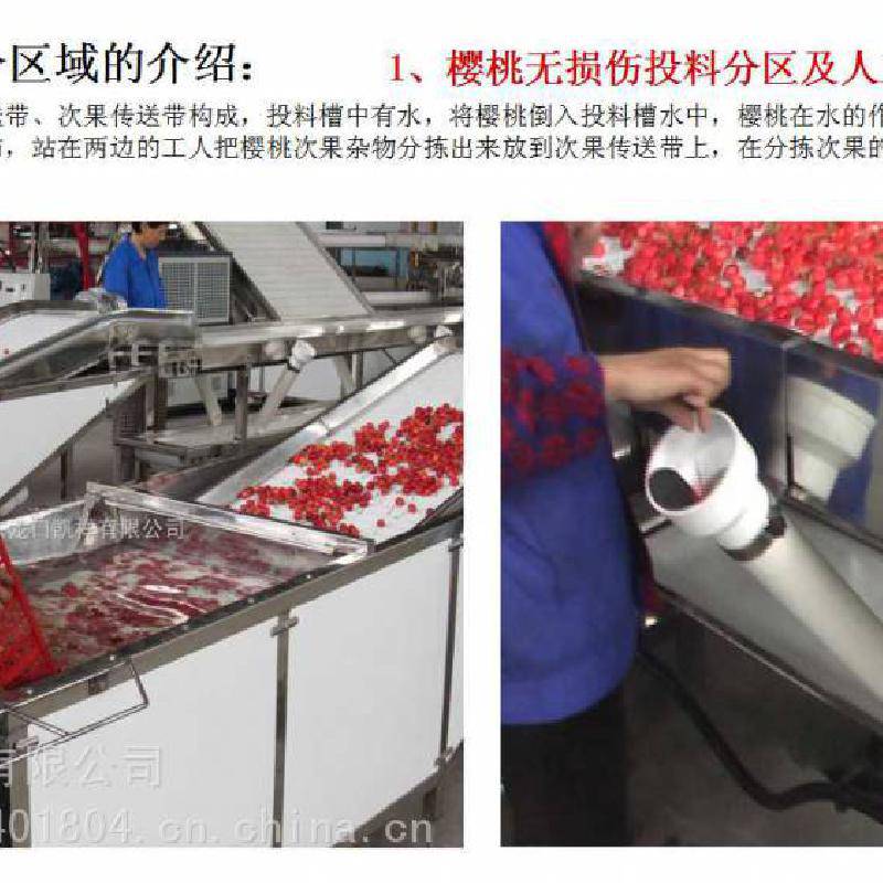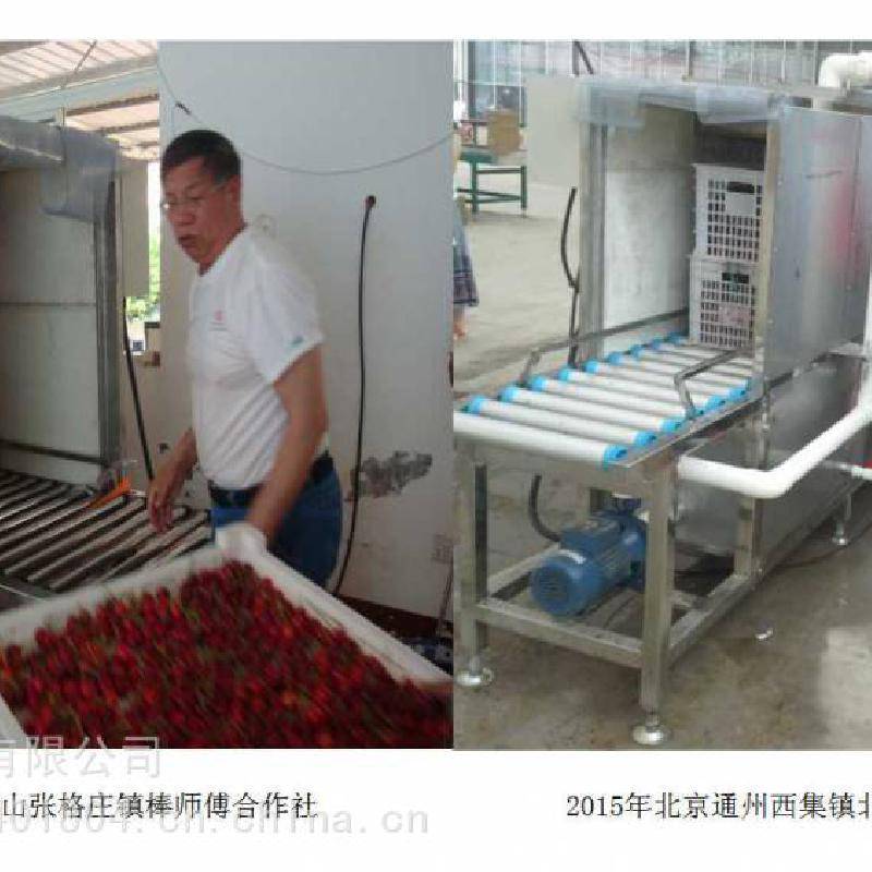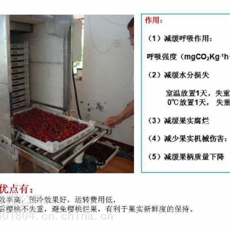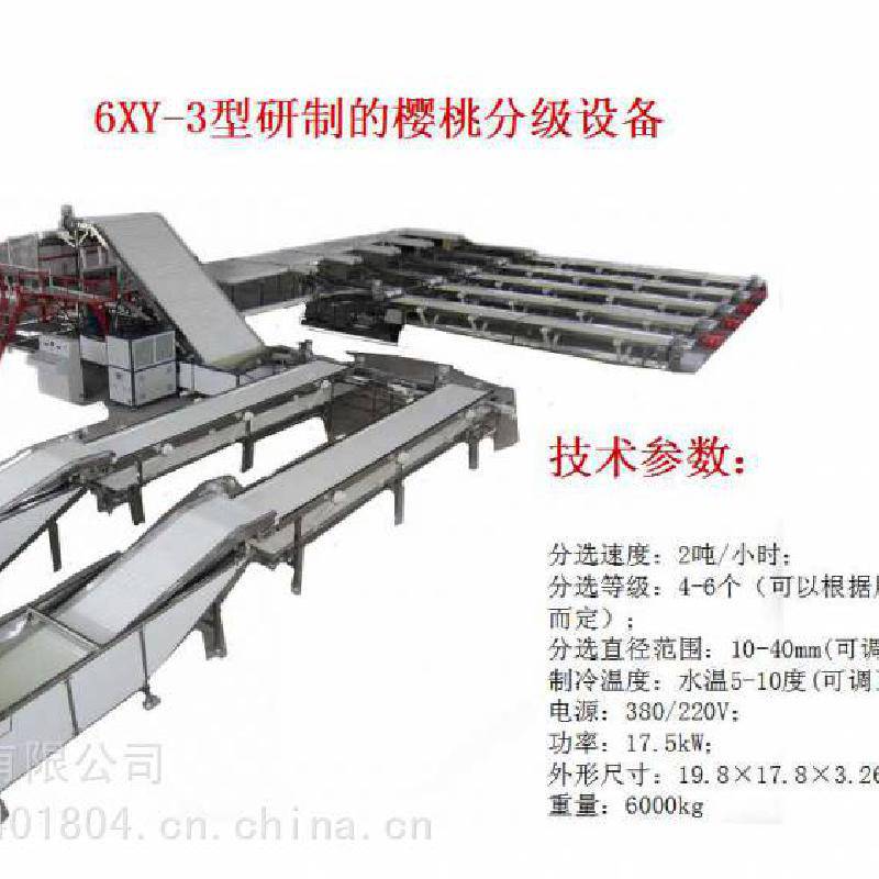 对樱桃进行预冷,有利于樱桃从产地采摘到冷链物流运输之前的***一公里的品质,在国外,樱桃采收后大多都是采用水预冷。 水预冷最主要的优点是:果实降温快,预冷效***,预冷效果好,运转费用低,适用范围广,预冷后产品不失重,而且还减少了果实表面微生物的数量,降低了腐烂风险,有利于果实新鲜度的保持。 我们公司跟山东省果树研究所联合研制的小型水喷淋式预冷机,也是***台小型预冷机,这台预冷机有四个部分组成:传输系统,喷淋降温系统,冷水循环箱,制冷机,预冷机长4.6米,宽1.5米,每次可处理樱桃300至400斤,淋水10分钟至15分钟就可以将樱桃从常温降至5度左右。一个小时可以加工一吨,预冷机的规格尺寸和预冷能力可根据用户需要进行设计制造。 这个是只采用预冷机的工作流程,利用水预冷技术,迅速将果核的温度降到5度左右,装箱时放上吸水纸,实现樱桃的源头预冷,从而***樱桃更好的口感、更新鲜的品质,在起跑线上***樱桃质量迈出了关键的一步。 除了预冷,樱桃采后商品化处理还有更重要的一步:就是分选,图片是大型樱桃分选机在国外的使用现场,在欧美国家,樱桃在出厂前都会有严格的大小等级划分, 我们公司研制生产的樱桃分级设备,6XY-3型樱桃分选设备每小时可处理樱桃2吨。 6XY-2我们研制开发了适合国内用户使用的小型樱桃分选设备,经过几年来用户使用反映的情况,我们对樱桃小型分级设备进行了多方面的调整、改进和完善,对水循环和杂质处理方面又做了根本的改进,这个是普通型樱桃分选机的工作流程, 在普通樱桃分选设备的基础上我们又根据悉尼以及烟台客户的要求做了改进型樱桃分选机,这款设备增加了水槽上料区,将樱桃倒入投料水槽中,樱桃在水的缓冲作用下自然散开,呈单层分布提升到原料传送带上,更适合站在两边的工人把樱桃次果杂物分拣出来,***减少碰刺压伤。 |