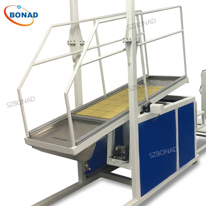 符合标准: DIN-51097, DRAFT EN *** 10545-17 ANNEX C, UNI CEN/TS 16165:2012 (E), DIN 51130:2014-02 本设备用于自动扶梯和自动人行道梯级和踏板踏面、梳齿支撑板和楼层板表面防滑性能的型式试验;设备由一个不易扭曲的600mm宽2000mm长的平板作为模拟倾斜平台,纵向坡度在0°到45°间可调。斜坡法防滑测试仪有进口、国产两种方式选择。 伺服电机通过丝杆装置驱动平台以规定的角速度转动,经过试验员的控制,按0.50逐步改变角度;试验前测测试表面上与试验鞋胎面上涂润滑剂,戴着安装保护装置的试验员保持直立的姿态,顺着观察方向以每次半只鞋的步长在试验平台上前后走动,试验平台开始从水平位置以10/S的速度倾斜,当倾斜角达到时停止倾斜,记录倾角数值,重复3次,确保角度数值。 动态临界角 防滑类别 ≥6<10 R9 ≥10<19 R10 ≥19<27 R11 ≥27<35 R12 ≥35 R13 技术规格: 1. 由机电制动器移动控制。 2. 挂板上的按钮启动停止控制操作。 3. 通过倾斜数字仪表控制,精度±0.1°。 4. 工作角度的范围:0°÷45°根据标准。 5. 速度:每秒1°。 6. 供应:230 V - 50/60赫兹单相。 附件和备件: 1.根据DIN51130,CEN16165标准的n°42鞋子。 2.一套根据DIN51097,DIN51130,CEN16165的ST-A,ST-B,ST-C;ST-I,ST-II,ST-IIIA测试板。 公司专业生产IP防触电安规防护等级试验指、试验机、灯头量规通止规、插头插座量规、插座保护门、试验指针销、球压测试仪、弹簧冲击器、冷冻负载试验包、土壤水份传感器等等,还代理以色列OPHIR、德国WAZAU、德国GTE、德国FEMTO、英国MUNRO、英国RS、美国REGAN等进口品牌陶瓷砖/地板/道路摩擦系数测试仪、防滑检测仪、激光功率计/能量计、电流/电压/锁相放大器/光电接收器、试验仪器等等产品。