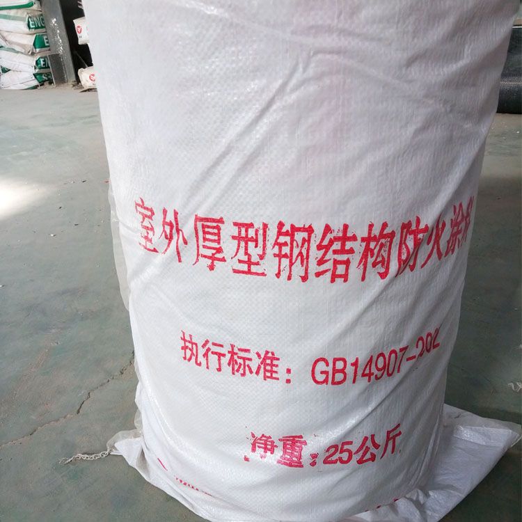 1、基层处理:施工前要清除钢件上的灰尘、油污和浮锈,然后在钢件上刷两道防锈漆,经检查没有涮刷现象后,方可进行下道工序。 2、防火涂料施工: 该防火涂料施工,可分为加金属网和不加金属网两种。 (1)加金属网固定金属网: 待防锈漆实干后,按照钢件形状剪裁好金属网,用钢筋卡固定在钢件上,然后用预先焊好的钢筋棍将金属网翘起部分压平,使网与钢件表面保持1cm左右的距离。 (2)不加金属网 配料比例:粉料:水=1:1.1-1.2 (3)喷涂(或涂抹)防火涂料 ①防火涂料的拌合按比例将粉料、水放进搅拌机中,搅拌5-10分钟,呈均匀稠厚流体状态即可。 ②喷涂:需采用的挤压泵喷涂系统进行施工。喷涂时喷枪要垂直于钢件表面,距离为0.4-0.6米为宜,喷涂压力应保持在0.4-0.6Mpa。 ③抹涂:与传统的抹水呢沙浆方法相似,要求厚度均匀一般,压实压平,避免出现蜂窝、空调等缺陷。