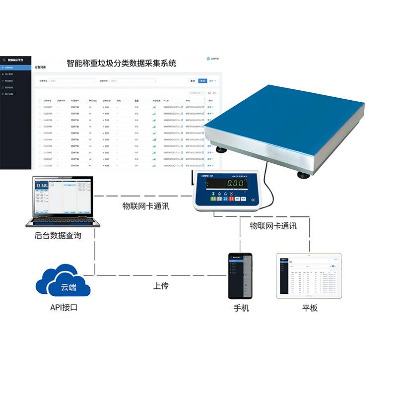 背景技术: 随着资源匮乏现象的日益严重,再生能源回收工程越来越被社重视,而垃圾分类是再生能源回收的先前条件之一,也是相对垃圾收集处置传统方式的改革,还是对垃圾进行有效处置的一种科学管理方法。在很多社区,针对垃圾分类回收的智能分类垃圾箱目前已经开始使用,但是有些不需要垃圾车收运的场合,例如对纸张、金属、塑料等可以再次回收利用的生活垃圾,目前都是通过人工通过称重的方式进行回收,其存在的不足是无法记录用户信息和垃圾信息等数据,就不能实现信息互联 为了解决上述问题,目的在于提供一种结构合理,可以记录用户信息和垃圾信息并实时上传的垃圾分类电子秤。 我公司正式推出废物电子追溯信息系统电子秤,垃圾秤、垃圾称重计量、垃圾自动定位称重计量管理系统,给每一袋废弃物贴上标签条码,让垃圾可寻踪溯源,实现废物管理透明、安全、高效。 相比以往手工操作和记录,该系统在实现废物处置的规范化、自动化和标准化的同时,节约了大量人力资源,提高了工作效率,也避免了在操作过程中产生的误差和数据不的困扰。通过该系统可以有效提高废物的监控管理水平,防止发生废物流失、泄露、扩散等意外,切实做到可控、可管、可追溯。 环保设备领域,尤其涉及智能分类垃圾箱。 垃圾秤、垃圾称重计量、垃圾自动定位称重计量管理系统 为了实现上述的目的,采用了以下的技术方案:垃圾分类电子秤,包括底座、秤台、秤杆支架和操作台,秤台和秤杆支架固定在底座上,操作台固定在秤杆支架上,操作台上设有操作屏、开关、无线传输器和用户信息确认装置,操作屏内设置数据处理器,开关连接操作屏,无线传输器和用户信息确认装置均连接数据处理器;秤台内设置称重感应器,称重感应器数据处理器。 作为优选,操作台上还有设有与数据处理器相连的网口接口、USB接口和打印机,网口接口丰富了数据传输的种类,USB接口用于系统数据更新和存储,打印机打印各种小票,小票上可以显示时间日期、本次的称重等数据。 操作流程: ( 垃圾回收秤安装→称重→通过4G模块上传到系统→后台系统登录→实时查询称重数据) 即:先装回收秤安装好,每个垃圾桶的底部都附上一个相对应的ID卡,操作人员将垃圾桶推入称重平台上,通过平台上的读卡器自动识别垃圾的种类,称重仪表接收到信号以后会自动对应垃圾的类别,操作员将垃圾桶完全推到平台上,松开手后待称重数据稳定,称重仪表稳定灯亮起,通过称重仪表内的4G物联网卡发送称重数据到云平台。 售后服务: 售:免费提供产品技术咨询、设计方案、质量定位、价格评估; 售中:信守承诺,严把生产和质检关,***不良品出厂; 售后:免费提供网络远程操作与维护知识培训, 如产品出现质量问题,巨天仪器项目部***不超过1 小时内及时提供电话技术支持及网络远程服务。 我们承诺:用心服务,卖出一台秤不是目的,目的是让卖出的每一台电子秤都能更好的让解决您称重方面的烦扰,很多顾客担心售跟售后态度,产品的质量等问题,在这里巨鼎天衡(苏州)称重设备有限公司***将用心服务到底。