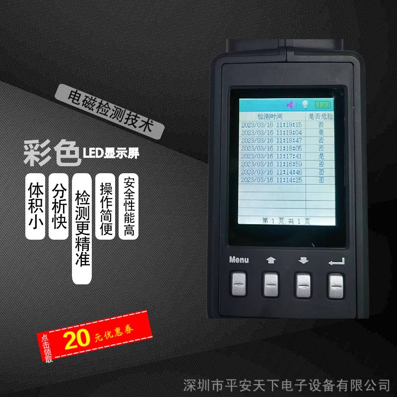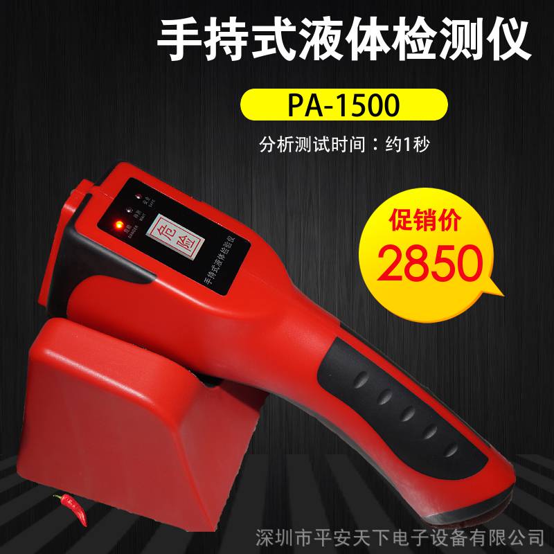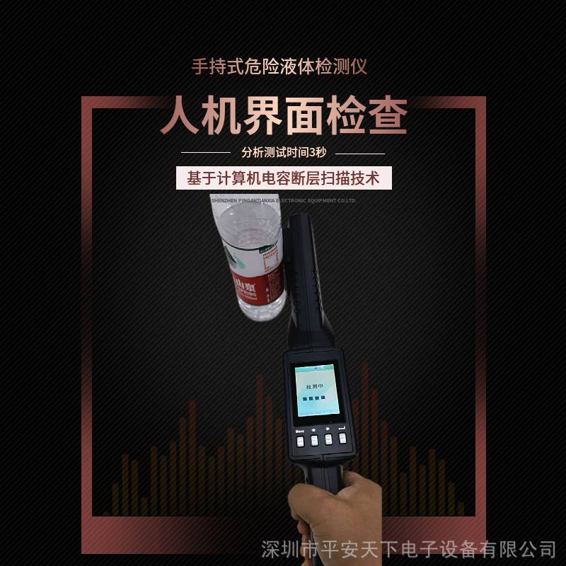 手持液体检测仪1500安全检测仪手持式危险液体安全检测仪是一款专门用于探测易燃易爆液体的安检仪器。体积小、分析快、操作简便,能够在不接触液体的情况下快速辨别出易燃易爆液体,被广泛应用于车站、地铁、机场、公检法***机构、大型运动会等场所的安检工作。