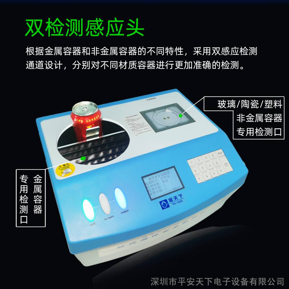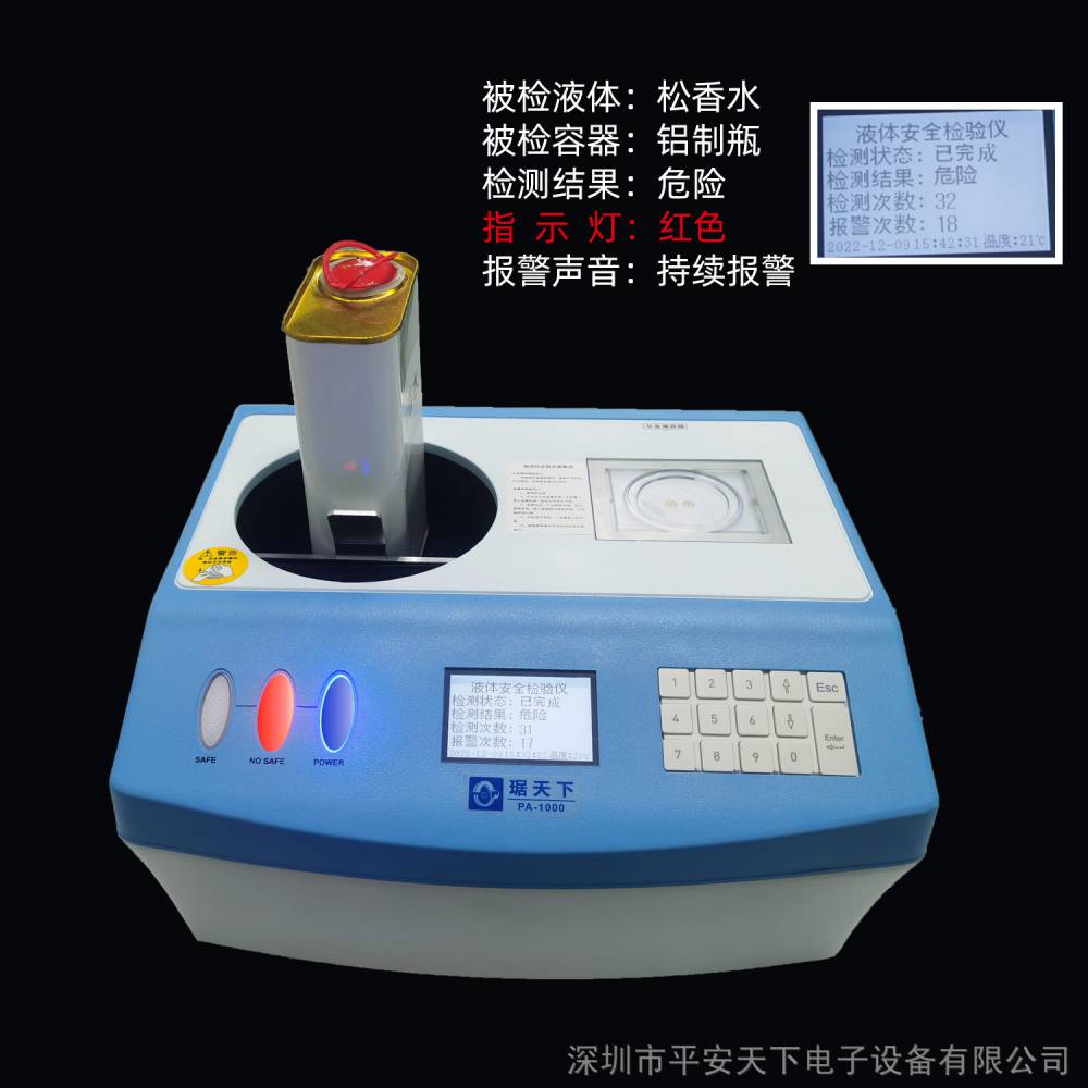 琚天下台式液体安全检测仪PA-1000危险液体探测仪PA-1000型台式液体安全检测仪是我司***液体安检设备。采用超宽带脉冲微波反射法及热导法,适用于玻璃、塑胶、金属、陶瓷等各种常见包装液体的检查,能够在不打开液体包装的条件下,自动检测危险液体,且识别率准确,高效。