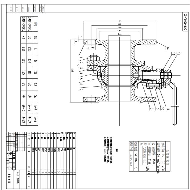Q41F浮动式软密封不锈钢球阀技术规范主要性能规范 Capability Criterion