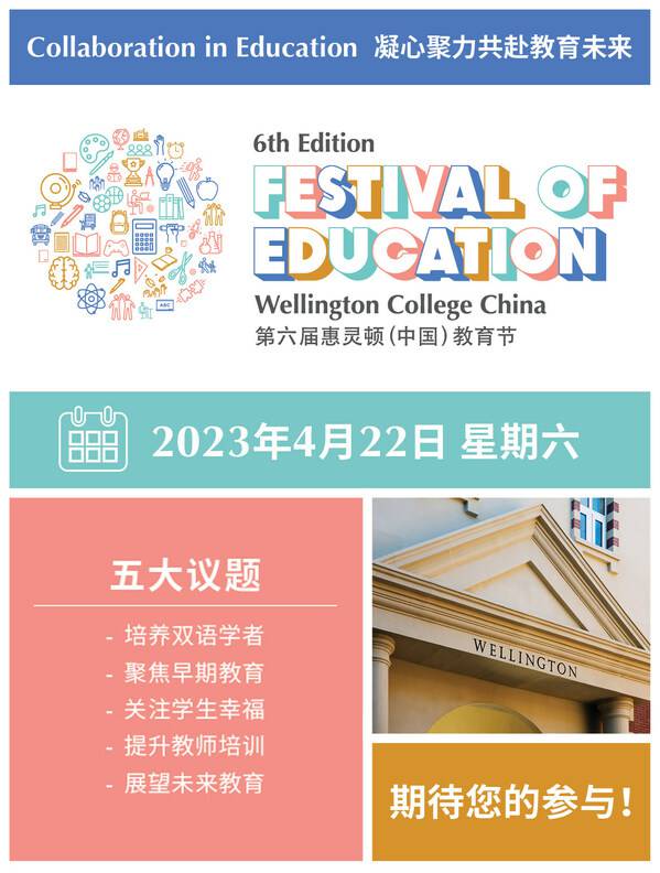 "很高兴惠灵顿(中国)教育节能在两年后再次召开。我们的嘉宾阵容正在不断扩大,将有越来越多各自领域的意见***,与我们共同探讨‘凝心聚力共赴教育未来'主题之下的方方面面。他们将在提供丰富信息的同时,致力于为与会者带来思想启迪。我们诚挚地邀请您‘各抒已见,畅所欲言',期待与您相遇。" ——惠灵顿(中国)***总校长Julian Jeffrey 五大议题紧扣行业热点 有别于传统的教育会议,惠灵顿(中国)教育节的核心在于"学习应是启人心智、引人入胜且乐趣无穷的"。基于此,惠灵顿(中国)教育节将呈现充满思辨的讨论、富有见解的演讲及金句频出的雄辩,覆盖热点话题和前沿观点。 本届教育节以"凝心聚力共赴教育未来"为主题,下设五大议题:培养双语学者、聚焦早期教育、关注学生幸福、提升教师培训、展望未来教育。从学生、教师、家长、员工等多角度,覆盖教学、培训、团队建设、学校发展等多领域,为与会者带来"干货满满"的***容。
