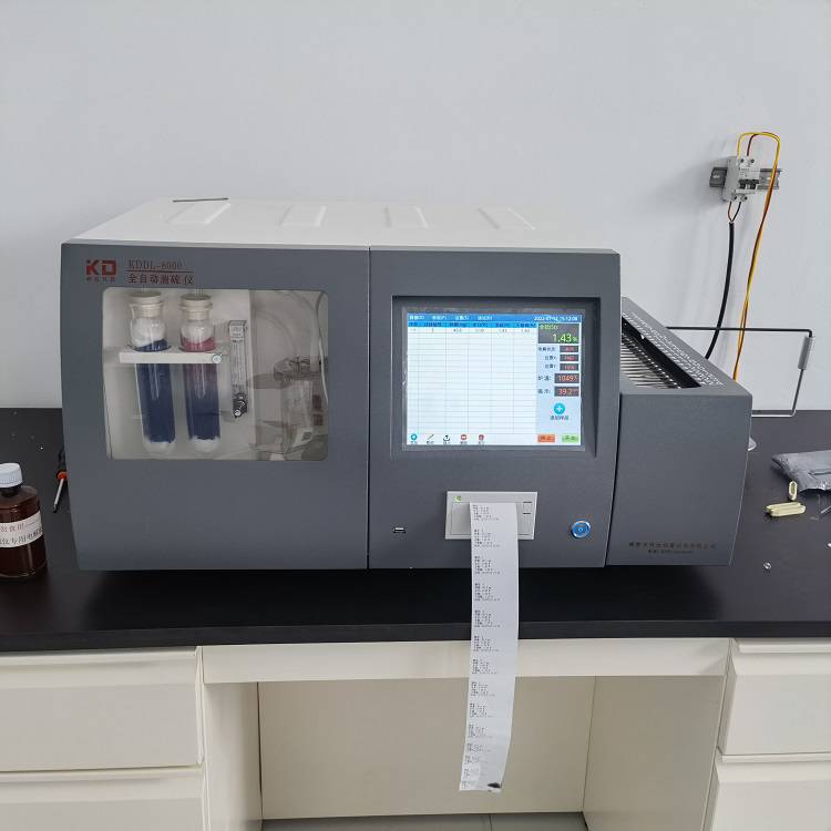微机多样定硫仪采用立式高温裂解炉,组件模块化思想设计,将自动连续送样机构,电解池,搅拌器,空气净化器等系列组件装配在一个箱体内。结构合理,构思巧妙,从而使仪器紧凑,造型大方。可外接电子天平,通过称量试样时按键可以实现自动称量,自动连续送样机构可实现一次性放入24个样品,且在测试过程中可以随时追加试样,更具有插队功能,重新排队功能,让后追加的样品可以提前优先测定。 定硫仪开始试验: 1、 接通电源,燃烧炉升温,当升到900℃--1000℃时,仪器将自动开动电磁泵,以干燥通气管道和烧结玻璃熔板。 2、 配制电解液:称取5克碘化钾,5克溴化钾,溶于250—300毫升蒸馏水中,然后加10毫升冰醋酸即可. 3、加电解液:打开电解池上方的橡皮塞,将电解液加入。 4、 开动搅拌器,缓慢调节转速旋扭至适当速度。搅拌速度稍快些好,一般在500转/min左右,不能调的过快过快会失步,当遇到失步时,应将速度旋扭调至最小,等电机停转后,重新调节。先作1—2个废样,待电解液平衡后即可 5、在试样称量前,应尽可能的将试样瓶内的试样混和均匀,用手捏住带盖的试样瓶上方,手腕自上而下的做圆周运动,切勿上下摇动试样瓶,或打开瓶盖用称样勺搅拌试样。试样充分混和是确保结果***和准确的关键。 6、 天枰上放瓷舟称取50毫克/份 左右的煤样,上面覆盖一层三氧化钨,依次将瓷舟用瓷舟镊放入送样口(每次放入一个瓷舟后,按一下送样按钮,置入样重,再放入下一个瓷舟……依次类推。按下开始按扭,整个试验过程由计算机控制,按预先写入的程序执行。 7、试验完毕后,同时关闭仪器,放出电解液,并用蒸馏水清洗电解池。 8、 电解液可重复使用,用的时间长短根据重复使用次数和试样含硫量高低而定。但每次做试验前应进行1—2次测定,使电解液中碘—碘离子电对的电极电位校正到仪器的所需数值。(一般)电解液的PH值在1—3级时,可以使用,但PH值小于1时,应重新配制电解液。 9、 试验连续进行,如中间间隔时间较长,在试验前需加烧一个废样。