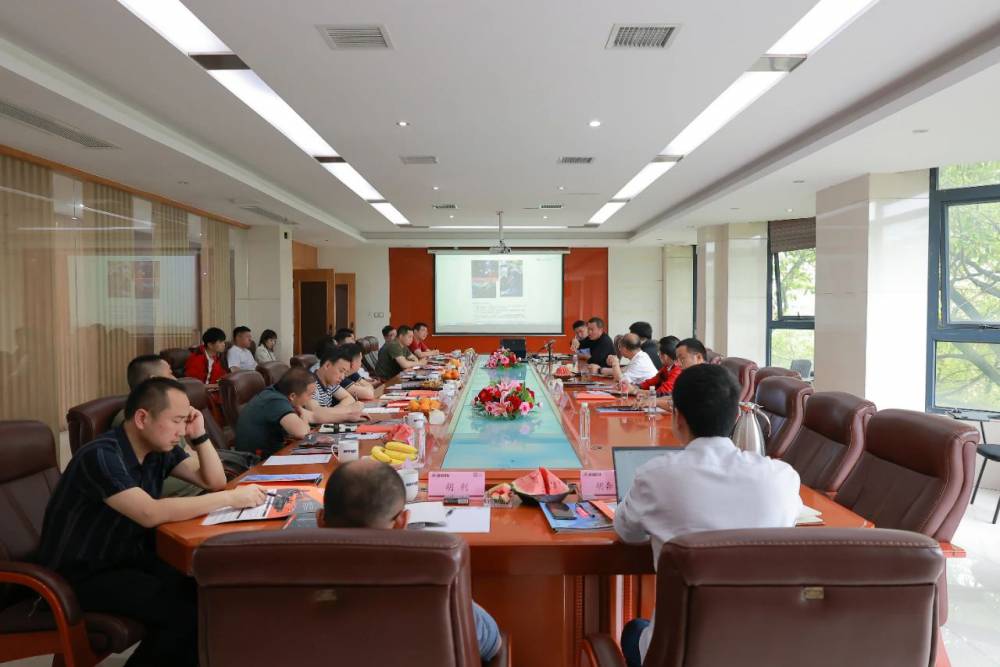 交流会上,董事长李小祥深入了解湖南有色产业投资集团的各矿山开采现状,有针对性地向客户介绍矿洞掘进、支护、喷浆、采矿等工序成套解决方案,并详细介绍DL2-Nb中深孔台车、QM1撬毛台车、HP4湿喷台车等成套应用方案及其优势;随后,双方针对如何进一步提升采矿效率、保障工人安全及降低采矿成本等方面的问题展开深入交流。