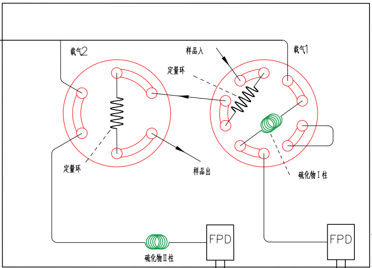 技术参数 l 气路控制:高精度电子压力/流量控制 l 压力设定范围:0~100psi l 柱压精度:0.001psi l 控制温度:室温+5℃~450℃,增量0.01℃ l 程序升温功能:16阶,(可拓展) l FPD具有自动点火功能 l 检测限:3×10-12g/s(cos) l 动态线性范围:>105 l 基线漂移(30min)≤0.2pA l 基线噪声≤0.02pA 流程图