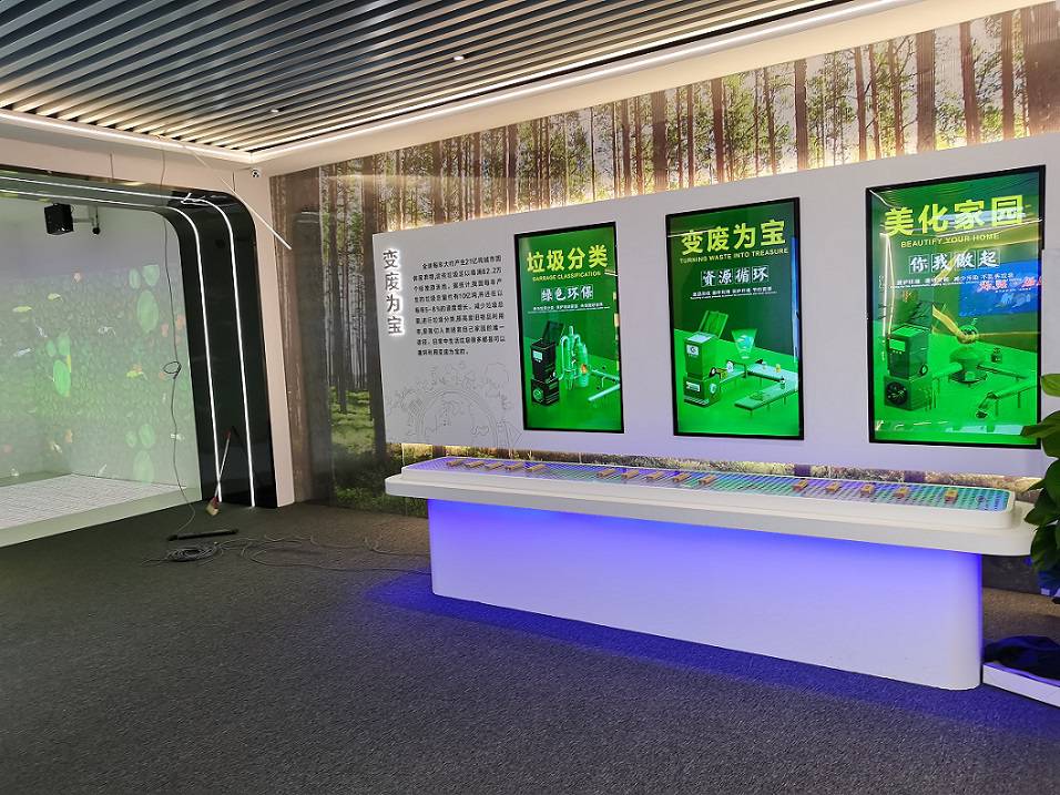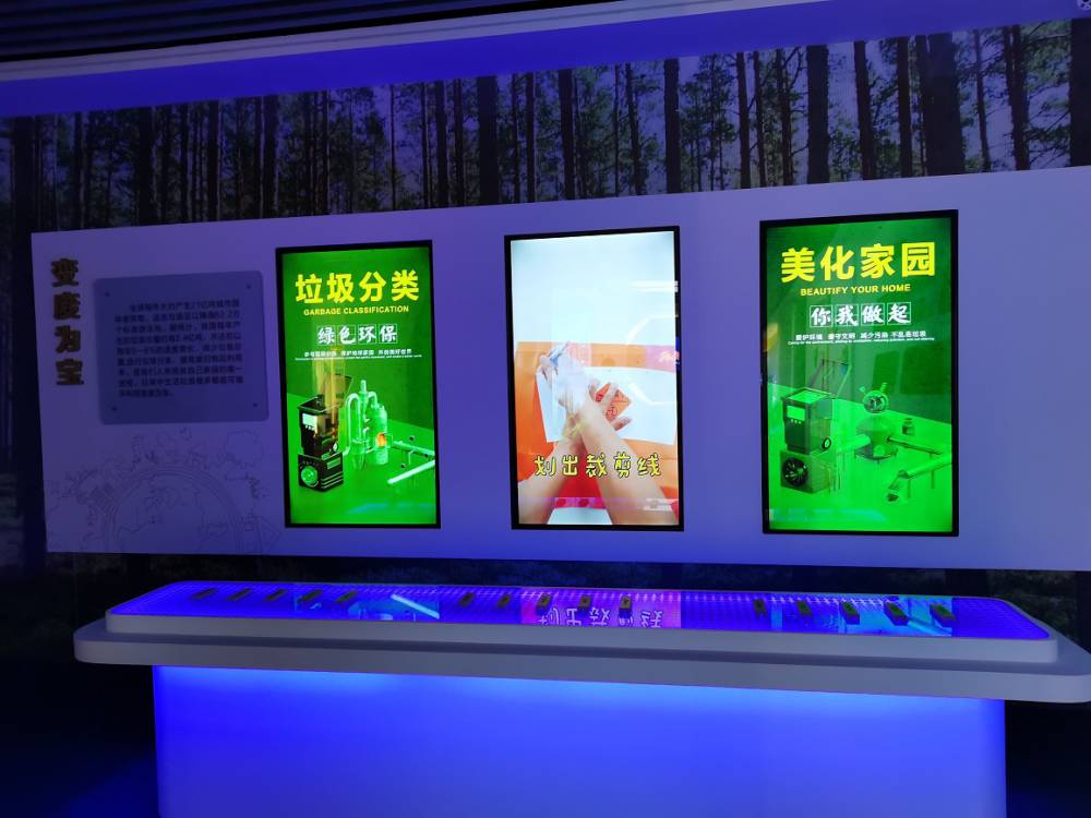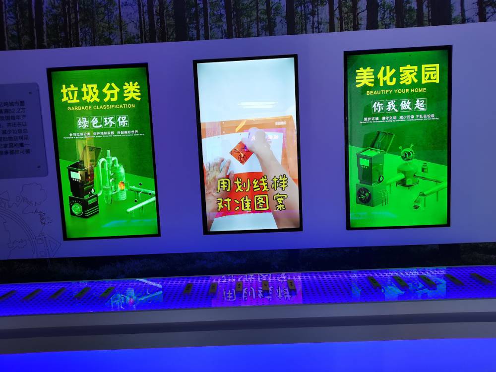 哈喽朋友们,我们继续来分享惠济区垃圾分类科普馆展厅里面好玩的多媒体展项。科普类展厅的设计除了娱教于学之外,还要有好玩、互动、高科技感等元素,大致基于这几个出发点,在垃圾分类科普馆展厅里面设计了一个拉卡互动游戏区域。这个区域的主题就是变废为宝,在背景墙上放置3块竖版屏幕,在屏幕的前面放置一个操作台,操作台上放置15个木板,每个木板对应一种可利用物品的名称,当参观者拉动这个卡片的时候,系统会自动识别到这个卡片上的主题内容,屏幕上就会播放对应的变废为宝的图片或者视频等元素。 我们在上一节介绍的是云之视3D全息投影垃圾分类展厅科普馆沉浸式CAVE扫垃圾互动游戏技术调试施工拆解,在这一节呢我们详细分享一下这个比较神奇的拉卡互动游戏的技术细节。 首先这个区域的主题是变废为宝,那么背景墙上的三块屏幕的主题分别是: 《垃圾分类,绿色环保》,《变废为宝,资源循环》,《美化家园,你我做起》 。在屏幕的前面是一个操作台,上面放置了15个卡片,分别是:雪糕棒、灯泡、油漆桶、鸟笼、奶粉罐、自行车、纸袋、鸡蛋壳、轮胎、塑料箱、纸杯、玻璃瓶等15种,当客户任意拉动某一个卡片,系统就会自动识别这个卡片的内容,在屏幕上就会自动播放对应的视频或者图片内容,增强体验感,提高科技感,在垃圾分类游戏的过程中,更能体验变废为宝的意义,提倡绿色环保,人人有责,从每一个人做起,每一个废品都可以循环利用,变成有用的资源,更加的有教育意义。 这一种拉卡人机互动是怎么实现的呢?为什么只是拉动一个小木板,系统就能识别到木板上的内容呢?为什么屏幕上会自动播放素材呢? 背景墙上屏幕的设置呢,我们一改传统的做法,传统的摆放都是横向的安装,这种屏幕装置呢大家都是经常用到的,比如我们家里的电视机,使用的电脑显示器,笔记本电脑屏幕等等,都是常规的横向屏幕,没有什么新意,这几块屏幕我们特地的竖向安装,类似我们常用的手机放大版,比较与众不同。但是在制作素材的时候,需要一些改动,正常横向的屏幕是1920*1080的分辨率,我们把屏幕竖起来后,分辨率就变成了1080*1920了,素材定制的时候宽高比必须符合竖版的。然后就需要用到木板识别器,当某一个木板拉起来的时候,系统能够自动识别这个木板内容,感应器感应的信号后,就会发送指令代码到中控主机,中控主机接收到播放指令后,就会发送播放代码,在屏幕上就会自动播放相应的视频或图片素材。 至此,这个垃圾分类科普馆里面的拉卡互动区域就调试完成了,参观者就可以来体验垃圾分类的小游戏了。大家有什么好的设计思路可以一起沟通,我们一起努力,一起让想法通过技术来变成现实。 |