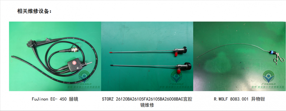 维修案例一: 设备名称:OLYMPUSCF-H260AI肠镜 检测故障:图像模糊钳子管漏,光束断,角度不够,软硬度调节没反应,无喷嘴,角度紧,光束玻璃进水 维修方案:更换CCD组件、钳子管,光束,软硬度调节钢丝,钢网,钢丝,橡皮,喷嘴 维修周期:7-10个工作日 保修周期:6个月 维修案例二:维修富士肠镜 设备名称:OLYMPUSCF-Q160L肠镜 检测故障:钳子管漏钳子管漏、橡皮老化、角度不够、插入管微老化 维修方案:更换插入管、钳子管、橡皮、调角度、螺旋管支架 维修周期:7个工作日 保修周期:6个月 维修案例三: 设备名称:OLYMPUSCF-240I肠镜 检测故障:没图像、光束断、插入管老化、弯曲管老化、旋钮漏水、水气管漏水。没图像、光束断、插入管老化、弯曲管老化、旋钮漏水、水气管漏水。 维修方案:(更换CCD、光束、插入管、弯曲管、橡皮。) 维修周期:20个工作日 保修周期:6个月