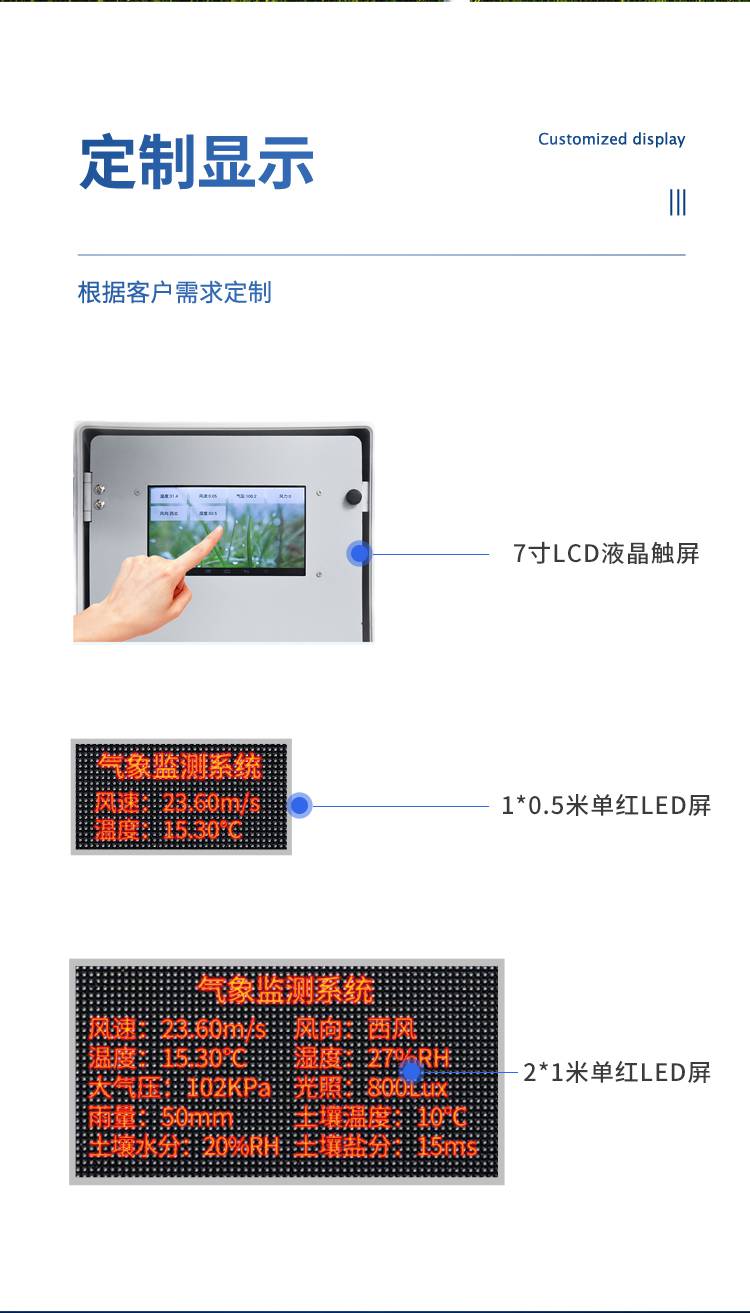 型号推荐:TH-QC7】小型全自动气象站—防护箱抗氧化,防水等级IP66 小型全自动气象站是一款在高度集成结构来实现气象环境数据观测的设备,通过各部分之前的安装就可以直接组成,是可以单人就能够进行组装的设备,不需要复杂的安装手段。 一、产品简介 TH-QC7小型自动气象站是一款高度集成、低功耗、可快速安装、便于野外监测使用的高精度气象观测设备。 该设备由气象传感器,采集器,太阳能供电系统,立杆支架,云平台五部分组成。免调试,可快速布置,广泛运用于气象、农业、林业、环保、海洋、机场、港口、科学考察、校园教育等领域。 二、产品特点 1、低功耗采集器:静态功耗小于50uA 2、标配GPRS联网、支持扩展蓝牙、有线传输 3、7寸安卓触屏,版本:4.4.2、四核Cortex™-A7,512M/4G 4、支持modbus485传感器扩展 5、太阳能充电管理MPPT自动功率点跟踪 6、三米碳钢支架,两节法兰盘对接 7、短信报警,超限后向***的手机上发送短信 8、ABS材质防护箱,耐腐蚀、抗氧化,防水等级IP66