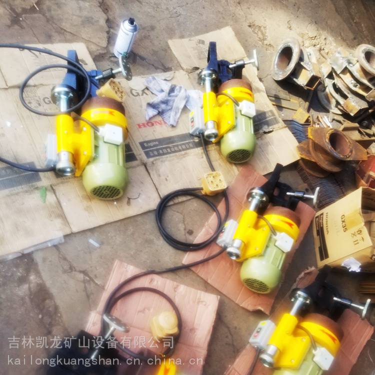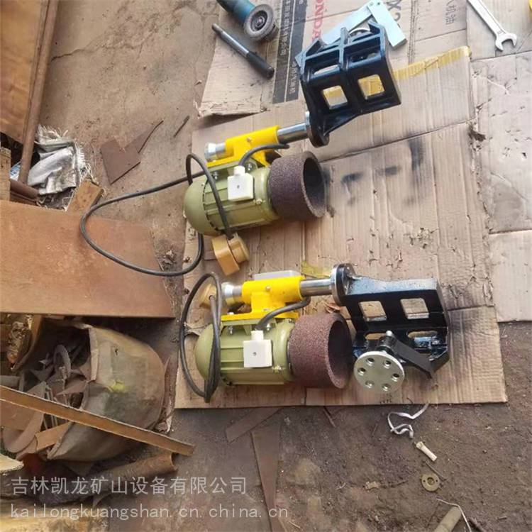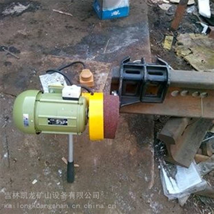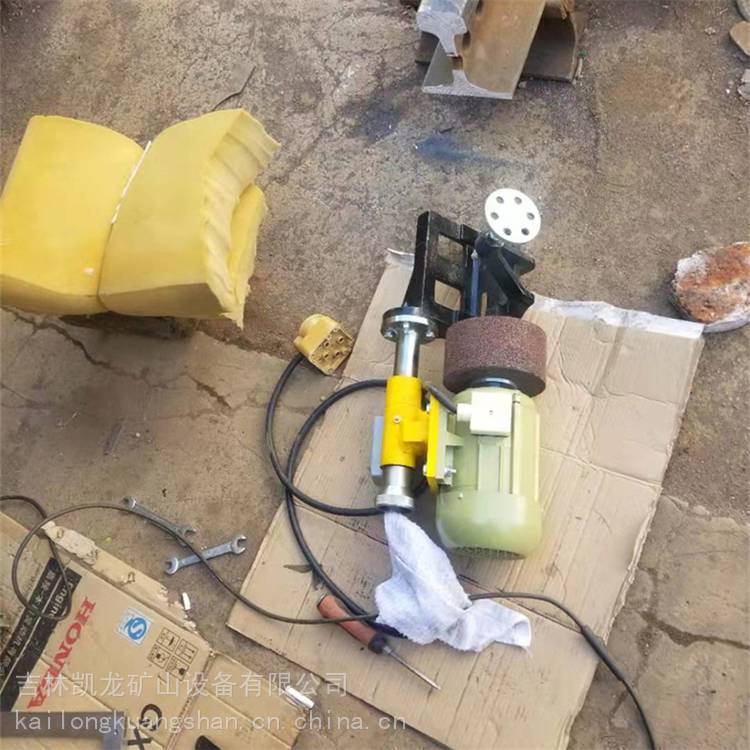 一、 前言 DM-I型电动钢轨端磨机,依据广大养路作业顾客的实际需要而设计开发的一种新型打磨机具。该机性能优越,结构合理,质量可靠,省时省力,性能价格比较好,十分适合铁路钻孔作业的需要。 该产品标准参照TB1926-87. 二、 基本结构与工作原理 原理:把电动机的动力(回转运动)直接传递给碗形砂轮,使其产生回转运动,即主磨削运动。同时,转动手轮通过螺旋机构(丝杠、丝母),把丝母(转动手轮)的边回转运动,边带动电机主轮、碗形砂轮……沿着丝杠(导向杆)轴向移动,即对钢轨端面轴向进给磨削;又通过手扶持搬杆摆动摆架(电机碗形砂轮),绕着导向杆轴线在钢轨端面径向方向(垂直于钢轨轴线)进行径向进给磨削,即径向进给运动。 结构: 1、 主运动---由电动机→碗形砂轮……组成。 2、 轴向进给运动---由转动手轮(螺母)→摆架(电机座板)→空心轴丝杠(导向杠)移动……组成。 3、 径向进给运动---由手扶持搬杆→摆架(电机座板)……组成。 4、 卡轨凹形钩、顶丝、定位螺钉……组成。 三、 技术参数 1、电动机: 型号 Y07132 电源 380V/50Hz 功率 1.1kw 转速 2800r/min 2、杯形砂轮(BW)外廊尺寸D×d×H=¢150×¢32×75 3、杯形砂轮周向速度 Vmax=22m/s 4、外廊尺寸 500 × 260× 180 5、整机重量 18kg 四、使用维护 1、首先装好碗形砂轮(BW),装前要检查砂轮是否有裂纹,端面是否平整,均正常后,用附带的专用套管六角搬手,用叉形搬手卡住主轴,将锁紧六角螺母扭紧。 2、再将打磨机装卡在钢轨上,注意,卡轨形钩的内上面一定要与轨顶面靠紧,旋动顶丝与钢轨顶紧,确保砂轮端面与钢轨轴线垂直,并再将卡钩与导向杆的定位螺钉锁紧。 3、开动电动机,主轴碗形砂轮开始回转,同时旋动手轮进行轴向给磨削,往复摆动手搬把,利用电机等的自重进行径向进给磨削。 4、要经常给螺旋机构、导向杆滑动面、螺母(手轮)推力槽…注入润滑剂,以减少摩擦阻力。