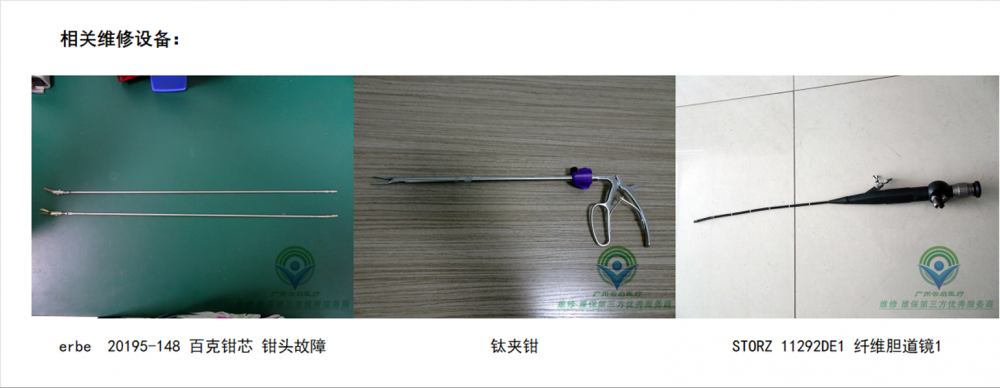 维修案例一: 设备名称:OLYMPUSGIF-XQ260胃镜 检测故障:反馈无法使用或使用不正常光束盖玻璃漏,C套磨损,插入管被咬严重,无图像,钳子管扁,光束暗,光束盖玻璃碎且漏 维修方案:更换CCD插入管、钢丝、螺旋管、光束、按键、C套、钳子管、橡皮 维修周期:7个工作日 保修周期:6个月 维修案例二:奥林巴斯GIF-260N胃镜维修常见故障 设备名称:OLYMPUSGIF-V70软镜 检测故障:插入管和导光蛇管老化 维修方案:更换导光管+C级维修(更换插入管,钳子管,水气管,弯曲钢网,橡皮) 维修周期:5个工作日 保修周期:6个月 维修案例三: 设备名称:Fujinon富士能EG-590WR胃镜 检测故障:反馈无法使用或使用不正常无图像,导光管漏,角度不够(镜子进水) 维修方案:更换CCD、导光管、钳子管、橡皮、调整角度钢丝 维修周期:7-10个工作日 保修周期:6个月