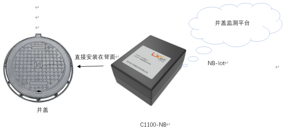 物联网行业的兴起,可通过NB-Iot远程监控的方式进行井盖状态监测,可将井盖的倾斜角度、位移、丢失等状信息通过NB-Iot网络上传到云平台,大大降低了人工巡检的成本,降低漏损率,并且能及时发现故障井盖,及时的发现问题、定位问题并解决问题,减少维修周期,降低带来的社会安全隐患。 方案介绍 井盖监测方案架构