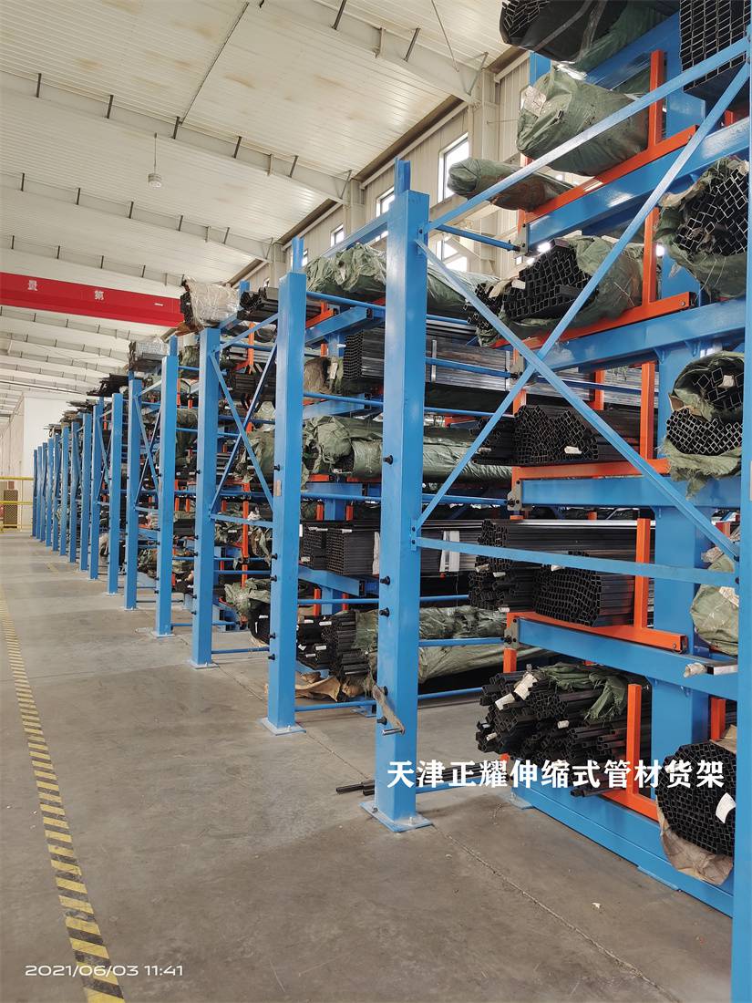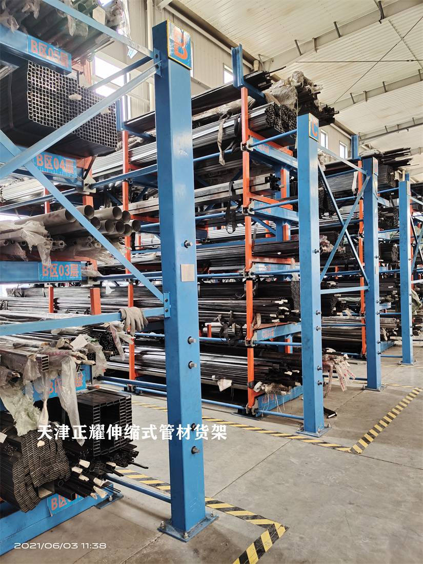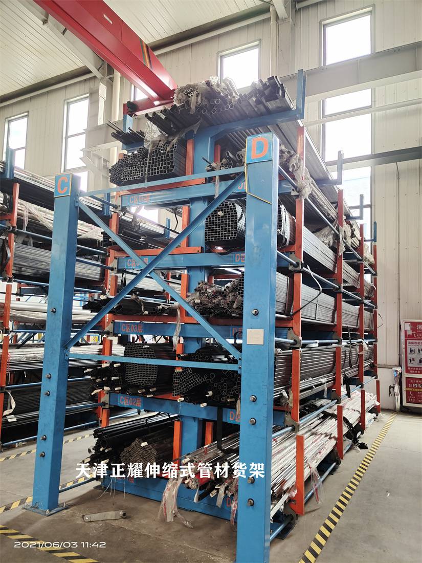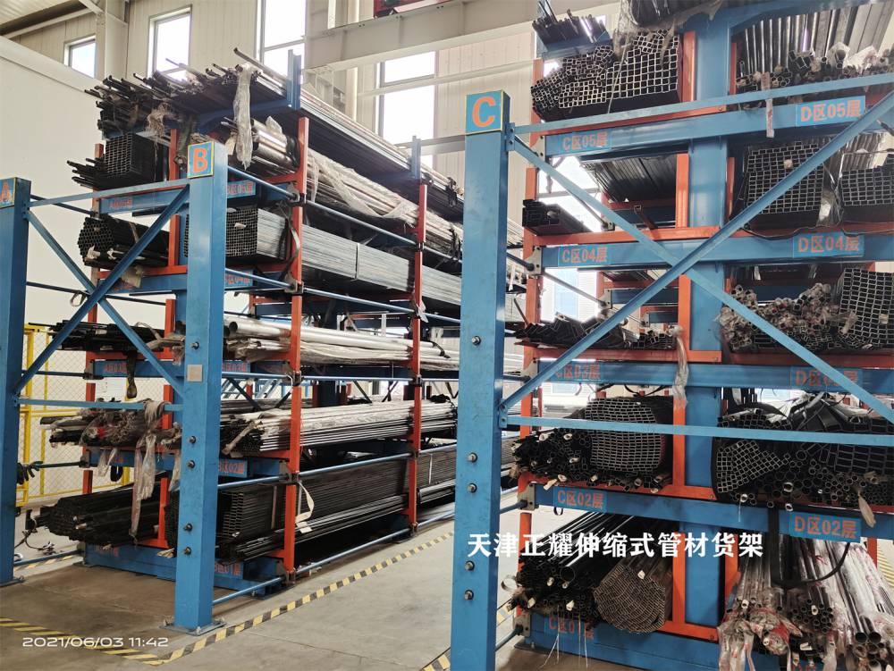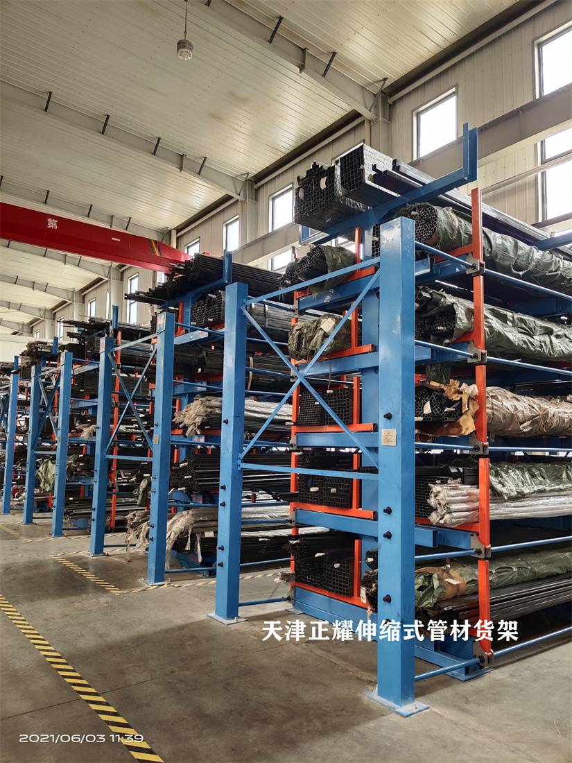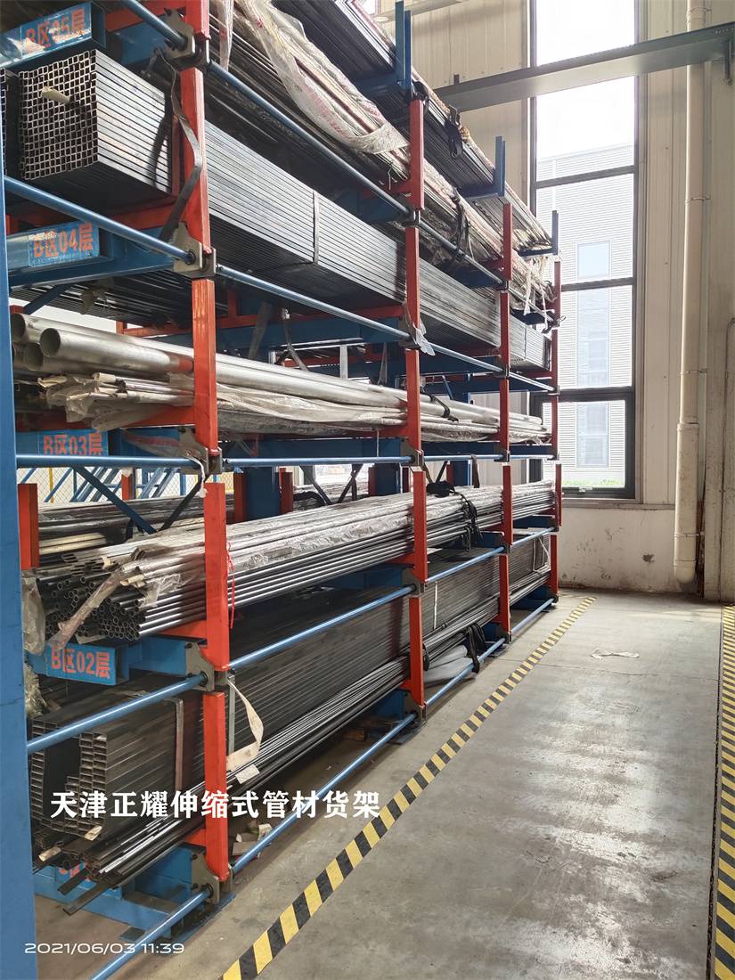 10月10日 山东德州伸缩式悬臂货架案例展示 存放6米钢材伸缩悬臂货架参数推荐: 长:6600 宽:1500 高:3450 4+1层,其中顶层为固定悬臂结构,下面4层为伸缩悬臂,单层单侧承重可以选择2吨 3吨 4吨,5吨6吨任意选择,根据材料情况来定。长度6米左右及以下长度的各类钢材都可以上架,如果有长度在1米以下的材料,建议加上网筐,可以存储短料 |