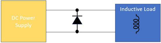 将直流电源连接到负载可能看起来很明确,但在某些情况下可能会变得具有挑战性。虽然电源制造商将其产品设计为在为各种负载供电时保持稳定,但某些负载特性存在着风险,甚至损坏电源的输出级。感性和容性负载以及负载电流快速变化的负载可能会产生导致振荡的条件,从而危及电源和负载。此外,感性和容性负载可以向电源施加能量。本文中,我们将探讨直流电源的不同类型的危险负载,并提供解决方案,以确保可靠的电源运行和负载保护。 1. 感性负载: 感应负载,如电机、电磁线圈和机电继电器,可向电源输入能量从而损坏电源。当电压和电流施加到感应负载上时,就会形成磁场,储存势能。当电源被关闭时,磁场就会崩溃,在相反的极性上产生电压骤升。这种反向电动势会损坏电源的输出级。 为了保护电源,在电源的输出端并联了一个反向偏置二极管,称为续流二极管或整流二极管。当电源关闭时,这个二极管允许感性负载产生的电流流过它,从而保护电源不受反向电动势的影响。 图1所示,使用续流二极管保护电源免受反向电动势的影响。