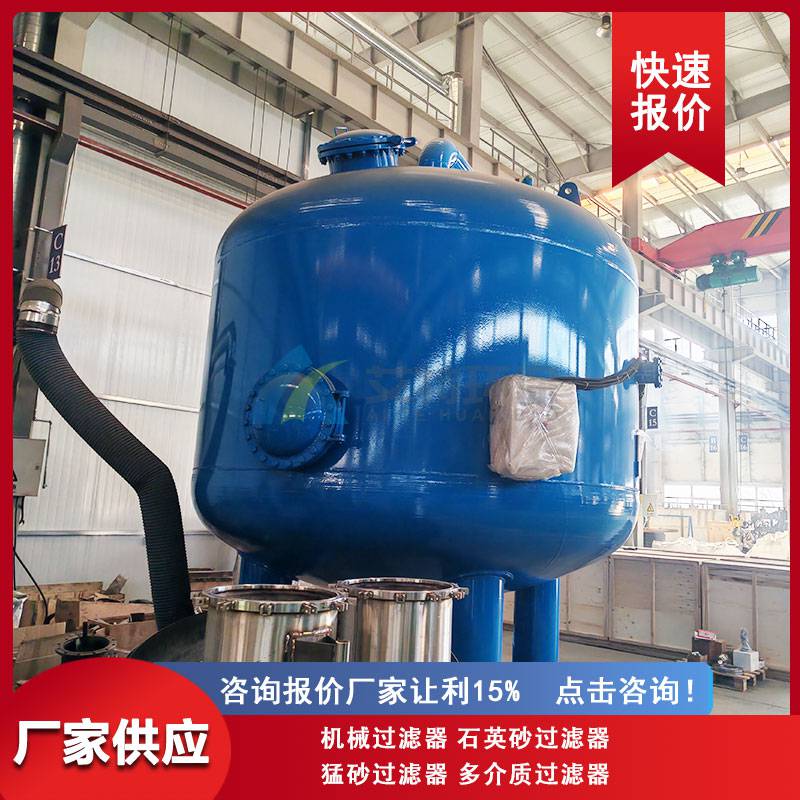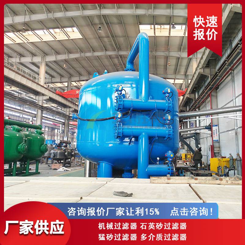 石英砂过滤器对原水 pH 值的要求,核心围绕 “保障滤料截留效果、避免设备腐蚀、防止滤料功能失效” 三大目标,常规适配范围为pH 6-8(中性至弱酸碱环境) ;若 pH 值超出此范围,需通过预处理调整,否则会直接影响过滤效果或损伤设备,具体要求及影响如下: 一、核心适配范围:pH 6-8,滤料与设备性能*** 在 pH 6-8 的中性至弱酸碱环境下,石英砂过滤器的滤料截留能力、设备稳定性均处于状态: 滤料吸附效果化 石英砂滤料(主要成分为 SiO₂)表面在中性环境下会自然带少量正电荷,可通过 “静电吸附” 中和原水中带负电的胶体颗粒(如黏土胶体、有机胶体),促进胶体聚集并被滤料截留,此时胶体去除率可达 80%-90%,出水浊度易稳定在 5NTU 以下。 设备材质无腐蚀风险 常规石英砂过滤器罐体材质为 “碳钢防腐” 或 “不锈钢 304”: 碳钢防腐罐体在 pH 6-8 时,内壁防腐涂层(如环氧树脂)稳定,不会出现涂层溶解或脱落; 不锈钢 304 罐体在该 pH 范围下,表面钝化膜(Cr₂O₃)完好,可抵御水的侵蚀,无锈蚀风险。 滤料无溶出或板结 中性环境下,石英砂滤料化学性质稳定,不会发生溶解(如 SiO₂在中性水中溶解度极低),也不会与水中杂质发生反应形成硬垢(如 Fe (OH)₃、CaCO₃),滤料始终保持疏松状态,孔隙不易堵塞,过滤周期稳定(24-36 小时)。 二、pH 值偏离适配范围的影响:效果下降或设备损伤 若原水 pH 值<6(酸性)或>8(碱性),会从 “滤料吸附能力、设备腐蚀、杂质形态” 三个维度破坏过滤系统,具体影响如下: 1. pH<6(酸性环境):滤料吸附失效 + 设备腐蚀 滤料吸附能力***下降:酸性环境中,大量 H⁺会中和石英砂表面的正电荷,导致滤料对负电胶体的吸附能力减弱 30%-40%,胶体去除率从 80% 降至 40%-50%,出水浊度升至 8-10NTU(远超常规要求); 设备腐蚀风险升高: 碳钢防腐罐体:若 pH<5(强酸性),防腐涂层易被酸溶解,露出的碳钢会与酸反应(如 Fe + 2H⁺ = Fe²⁺ + H₂↑),导致罐体内壁锈蚀、漏水,同时 Fe²⁺溶出会使出水发黄; 不锈钢 304 罐体:pH<4 时,表面钝化膜被破坏,会发生 “点蚀”(局部区域快速腐蚀),缩短设备寿命; 滤料杂质溶出:若原水中含 Fe³⁺、Mn²⁺等金属离子,酸性环境会促进其溶解,无法形成沉淀物被截留,反而随出水排出,导致水质二次污染。 2. pH>8(碱性环境):胶体分散 + 滤料板结 + 设备腐蚀 胶体颗粒分散性增强:碱性环境中,胶体颗粒(如黏土胶体)会吸附更多 OH⁻,负电荷密度升高,颗粒间排斥力增大,难以聚集形成大絮团,滤料仅能截留少量胶体,出水持续浑浊; 滤料板结风险升高:若原水中含 Ca²⁺、Mg²⁺(硬水成分),碱性环境下会生成 CaCO₃、Mg (OH)₂沉淀,这些沉淀会附着在石英砂表面,逐渐形成坚硬的 “垢层”,导致滤料板结(滤料颗粒黏连成团),孔隙率从 40%-50% 降至 10%-15%,过滤阻力飙升,出水流量骤降; 特殊材质腐蚀:若罐体为 “玻璃钢(FRP)” 材质,pH>10(强碱性)时,树脂基体易被碱腐蚀,导致罐体强度下降,甚至开裂。 三、pH 值超标的解决方案:预处理调整至适配范围 若原水 pH 值偏离 6-8,需通过针对性预处理将 pH 值调整至适配范围,再进入石英砂过滤器: pH<6(酸性水):投加碱性调节剂 常用调节剂:氢氧化钠(NaOH)、碳酸钠(Na₂CO₃)、石灰(Ca (OH)₂); 操作方式:在过滤器进水前端设置 “中和池”,通过计量泵投加调节剂,实时监测 pH 值,将其稳定在 6-7; 注意:若原水含高浓度 Fe³⁺、Mn²⁺,中和至 pH 7-8 时,可促进其形成 Fe (OH)₃、MnO₂沉淀,便于后续过滤器截留。 pH>8(碱性水):投加酸性调节剂 常用调节剂:盐酸(HCl)、硫酸(H₂SO₄)、二氧化碳(CO₂); 操作方式:在进水前端设置 “酸化池”,投加稀盐酸(浓度 10%-20%)或通入 CO₂,将 pH 值降至 7-8; 注意:若原水硬度高(Ca²⁺、Mg²⁺含量高),调整 pH 时需控制速度,避免局部 pH 骤降导致 CaCO₃快速沉淀,堵塞预处理管道。 四、特殊场景的 pH 适配调整:根据材质与需求优化 若原水 pH 值长期偏离常规范围,且预处理成本较高,可通过 “设备材质升级” 适配水质: 长期处理 pH 4-5 的酸性水:选用 “不锈钢 316L” 罐体(耐酸性能优于 304),或 “衬胶碳钢” 罐体(橡胶衬里耐酸腐蚀); 长期处理 pH 9-10 的碱性水:选用 “玻璃钢(FRP)” 罐体(耐碱性能优于碳钢),或 “不锈钢 304” 罐体(耐弱碱能力较强); *** pH(如 pH<3 或 pH>12):不建议直接使用石英砂过滤器,需先经 “多级中和预处理”(如酸性水先投加石灰中和至 pH 5-6,再投加 NaOH 微调至 6-8),否则即使材质升级,也无法避免滤料吸附失效。 总结 石英砂过滤器对原水 pH 值的核心要求是pH 6-8,此范围下滤料截留效果***、设备无腐蚀风险;若 pH<6 或>8,需通过 “投加调节剂中和” 预处理,或 “升级设备材质” 适配;*** pH 环境下,必须先经多级预处理调整水质,否则过滤器无法正常运行,甚至出现设备损坏。实际应用中,需在过滤器进水端安装 pH 在线监测仪,实时监控水质,确保 pH 值符合要求。 |