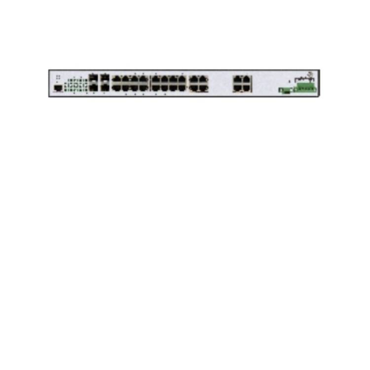 DS-3T3528 海康威视28口可网管工业交换机 提供24个千兆电口,4个千兆SFP光口 防震动防冲击能力,IP40防护 静态路由、策略路由、RIP、OSPF等三层路由协议 环网拓扑,支持STP/EAPS/ERPS等工业环网 基于端口的VLAN,IEEE 802.1Q VLAN和GVRP 支持SNMPv1/v2c/v3 双路220V宽压工业级电源输入 支持Dying gasp 平均无故的障工作时间超过80万小时 -40°C到+85°C工作环境温度 DS-3T3528 DS-3T3528 海康威视28口二层可网管以太网工业交换机