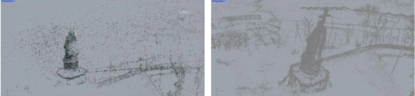 2、输入模型进行迭代训练 得到初始化点云后,就可以将点云信息输入到3DGS模型中进行迭代训练。3DGS迭代训练通过不断渲染误差反馈来优化高斯的位置、颜色和形状,并动态增删高斯,使场景逐渐从粗糙点群精化为高保真实体模型。 以下是初始化点云和训练迭代2万次后的点云对比,可以看到迭代训练后的点云信息更加丰富,场景细节更加多样。利用这些点云和3DGS椭球就可以构建出逼真的三维场景