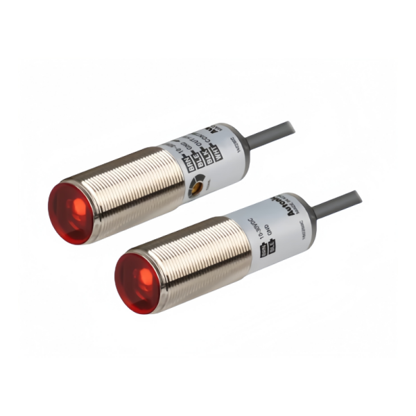 奥托尼克斯圆柱形光电传感器BRQT20M-TDTA介绍 奥托尼克斯圆柱形光电传感器BRQT20M-TDTA是一款对射型传感器,具备20m超长检测距离、1ms以下快速响应、IP67防护等级、数字信号抗干扰及灵活控制模式等特点,适用于工业自动化远距离检测场景。 核心参数 检测类型:对射型光电传感器,由发光器和收光器两部分组成,通过检测光束是否被遮挡实现物体检测。 检测距离:20m(远距离检测能力,适用于大型设备或空间布局复杂的场景)。 光源:红色LED(波长660nm),确保在常见工业环境下稳定工作。 响应时间:≤1ms(快速响应,满足高速运动物体的检测需求)。 电源电压:10-30VDC ±10%(纹波P-P: max. 10%),兼容多种直流电源。 控制输出:NPN/PNP集电极开路(灵活适配不同控制电路)。 防护等级:IP67(IEC规格),防尘防水,适应恶劣工业环境。 功能特性 超长检测距离:20m对射距离,减少安装点位,降低系统复杂度。 抗干扰能力强:采用数字信号处理技术,有效抑制环境光、电磁干扰。 快速响应:1ms以下响应时间,确保实时检测高速运动物体。 保护电路:内置电源反接保护、输出过流/短路保护,提升设备可靠性。 模式切换:通过控制线(白色)切换Light ON/Dark ON模式,适应不同应用场景。 灵敏度调节:部分型号支持外部电位器调节灵敏度(对射型除外)。 安装便捷:M18固定螺母设计,4个安装螺母孔,简化现场布线。 应用场景 物流自动化:检测输送带上货物位置,实现分拣、定位控制。 包装机械:监测包装材料存在性,防止漏包或错包。 电子制造:检测元件插装是否到位,确保组装精度。 安全防护:在危险区域设置光幕,人员或物体进入时触发报警或停机。 交通监控:检测车辆通过,用于计费或信号控制。