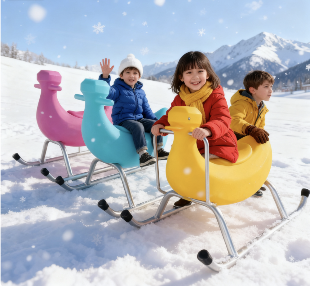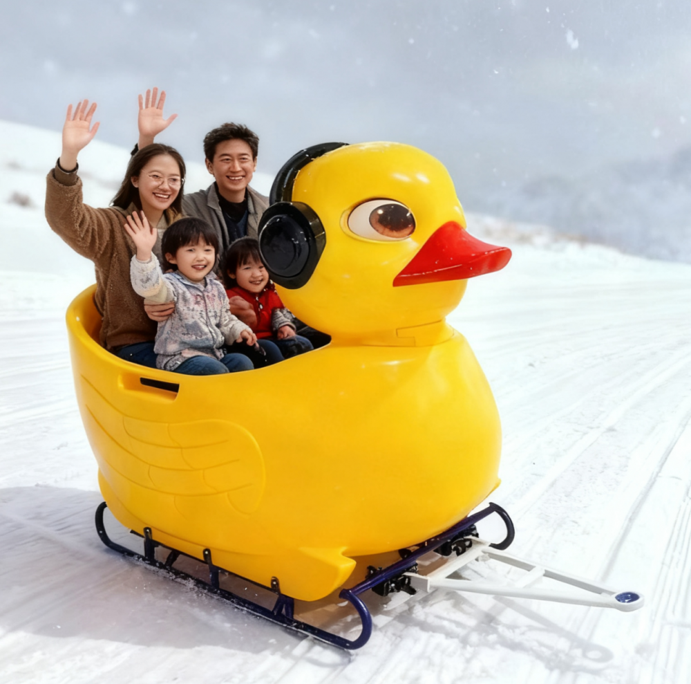 大黄鸭雪撬:雪道上的 “潮萌安全派” 头戴黑胶耳机的巨型大黄鸭,不再是泳池里的小摆件,摇身一变成了雪道上的 “明星座驾”。它以憨态可掬的造型打破传统雪撬的单调感,在安全设计上更是暗藏巧思:采用食品级环保 PVC 材质打造外壳,***无味且抗寒耐冻,即便在零下 20℃的低温环境中也不易开裂;内部搭载高密度海绵缓冲层,边缘经过圆角打磨处理,有效避免滑行过程中磕碰受伤;底部采用防滑耐磨的工程塑料滑板,搭配加宽设计的稳定结构,大幅降低侧翻风险,可轻松承载 2-3 人的重量。无论是闺蜜结伴滑行,还是家长带娃探险,都能在银白雪原上安心留下一路欢声笑语。在雪山背景的衬托下,大黄鸭雪撬仿佛从童话里 “游” 到了现实,成为雪场打卡的 “流量密码”,不少游客为了和它同框,特意奔赴雪场开启冬日狂欢。 香蕉冰车:马卡龙色系的 “童年安全卫士” 另一款 “香蕉冰车” 则凭借马卡龙色系和鸭形设计,精准击中亲子家庭的需求,同时将儿童使用安全放在首位。黄色、青蓝、粉紫三款色彩鲜亮的冰车,选用加厚加粗的优质金属支架,承重能力经过专业测试,可稳定支撑儿童体重且不易变形;座椅采用防滑透气的环保皮革面料,贴合儿童身体曲线,同时配备可调节的安全扶手,帮助孩子保持平衡;车轮采用软质橡胶材质,在雪地和冰面滑行时既能减少颠簸感,又能避免划伤地面,保障孩子玩耍时的舒适度与安全性。想象一下,孩子坐在色彩缤纷的冰车上,在雪地上肆意穿梭,银铃般的笑声在雪原回荡,仿佛一键开启了 “童年快乐模式”。它不仅是孩子的玩雪伙伴,更成了家长追忆童年的 “时光机”,不少家庭选择全家出动,在雪地里来一场安心又刺激的冰车竞速赛,重拾冬日纯粹的快乐。 双雄联动:解锁雪地童趣新场景 从潮酷吸睛且安全满格的大黄鸭雪撬,到***感满满又防护到位的香蕉冰车,这两款产品以 “萌趣 + 实用 + 安全” 的三重优势,为冬日玩雪场景注入全新活力。它们不仅是游乐工具,更像是雪地的 “欢乐催化剂”—— 大黄鸭让年轻人的雪场之旅充满潮流感与安全感,香蕉冰车则为亲子家庭搭建了一座欢乐又安心的 “冰雪桥梁”。今冬,不妨带上这两款 “雪地童趣双雄”,在漫天飞雪中开启一场关于快乐的探索之旅吧!