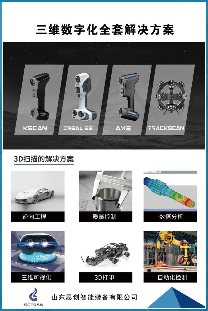 山东思创智能装备有限公司 山东思创智能装备有限公司专注3D数字技术行业应用解决方案。公司致力于为用户提供提高生产能力最前沿的3D扫描测量和分析技术设备。公司始终处于行业技术最前沿,公司的***三维扫描仪和3D扫描仪、红外双激光彩色三维扫描仪、济南工业级蓝色激光三维扫描仪、智能无线三维扫描仪等可广泛应用于汽车整车及配件、航空航天船舶、轨道交通、机械设计及制造、家居家装、建筑文物、教育科研、3D打印配合、三维可视化、刑侦等多个行业领域。针对不同行业、不同对象、不同需求,山东思创为您专业打造只属于你的三维数字化方案,利用进的三维扫描测量技术,协助您在专业领域占得先机。 在3D数字化领域,我们都是***者。我们敢于尝试其他人都不敢涉足的领域,大胆地为那些曾经超出想象的项目设计产品和技术方案,通过不断地打破技术限制,我们重新定义了3D领域的边界。 我们不仅提供优质的三维扫描仪、3D扫描仪、红外双激光彩色三维扫描仪、蓝色激光三维扫描仪、智能无线三维扫描仪,我们还提供济南可上门三维扫描服务、全国可上门工业检测、逆向建模等专业技术服务。 |