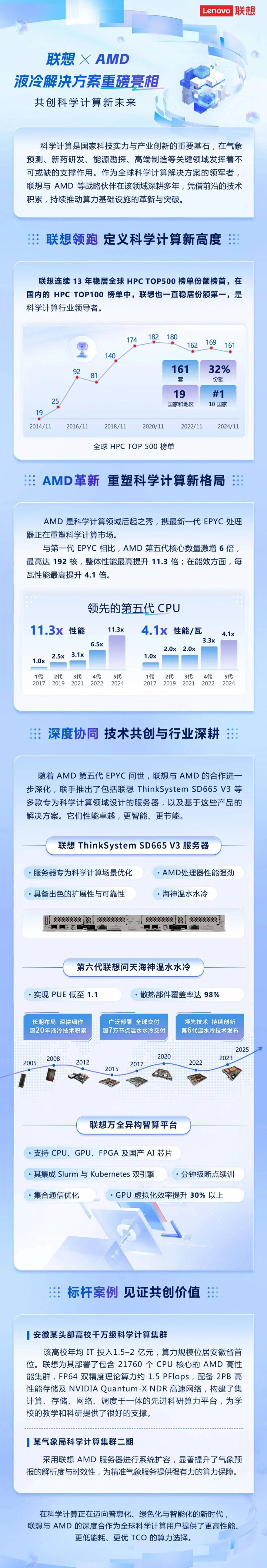 科学计算是国家科技实力与产业创新的重要基石,在气象 预测、新药研发、能源勘探、高端制造等关键领域发挥着不 可或缺的支撑作用。作为全球科学计算解决方案的*** 联想与AMD等战略伙伴在该领域深耕多年,凭借前沿的技术 积累,持续推动算力基础设施的革新与突破