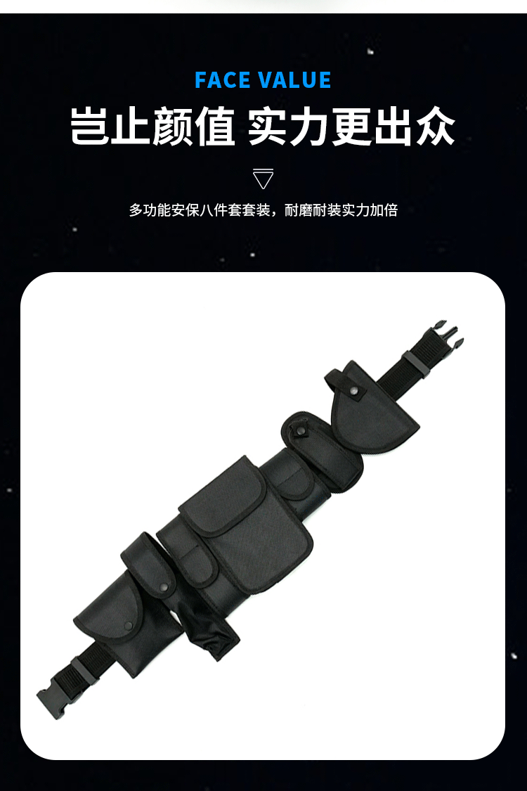 多功能保安执勤战术腰带 黑色牛津八件套腰带