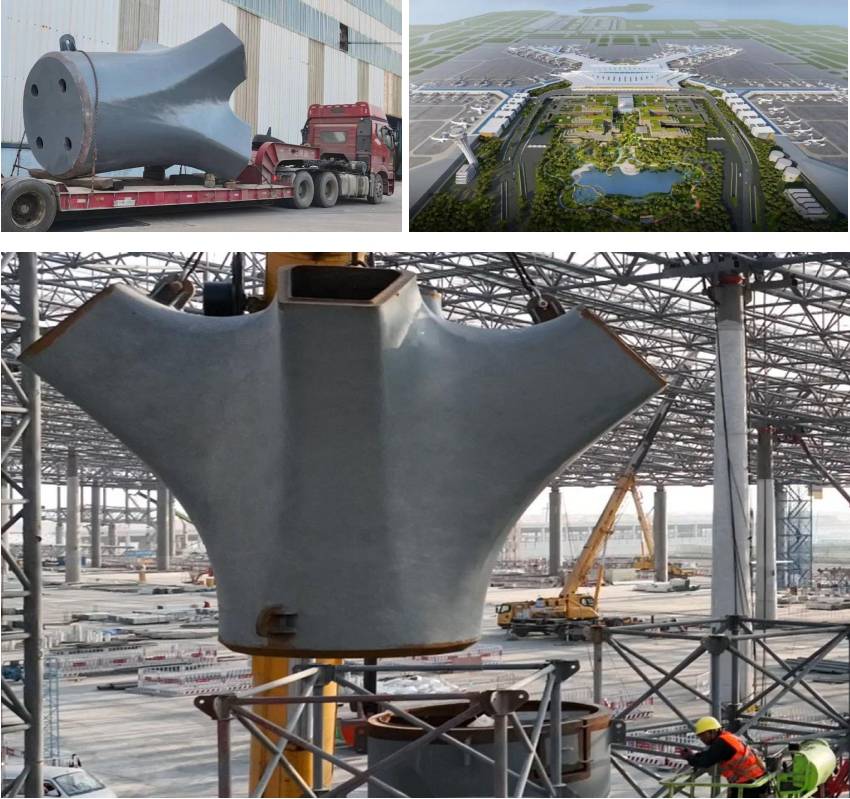 3. 主要应用场景 铸钢节点广泛应用于大跨度或复杂受力结构的工程中,例如: 大型公共建筑:体育场馆(如北京奥运场馆、福州奥体中心)、机场航站楼(贵阳机场、南宁机场)、高铁站房等。 超高层建筑:如深圳平安金融大厦(使用单件重达120吨的铸钢节点)。 桥梁与特殊结构:悬索桥索夹、水电设施等。 4. 常见结构形式 树型节点:用于主管与多支管连接,分散焊缝应力。 铰接节点:用于支座或杆件端部,简化构造并提升美观性。 混合型/球型节点:结合多种形式特点,如南京奥体中心的铸钢球节点。 5. 工艺流程与质量控制 生产流程包括木模制作、浇注、热处理、精加工等环节,需严格控制化学成分、机械性能和焊接工艺(如对接焊缝优先),避免尖角设计以保障气体排出和铸造质量。 总结来看,铸钢节点通过一体化铸造技术平衡了结构性能与建筑美学需求,成为现代复杂钢结构工程中不可或缺的解决方案。 |