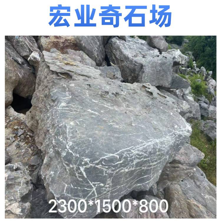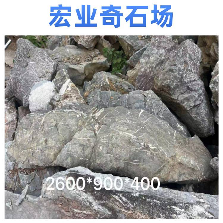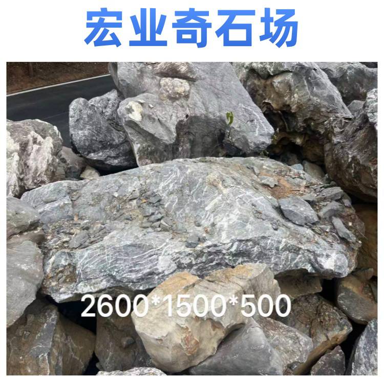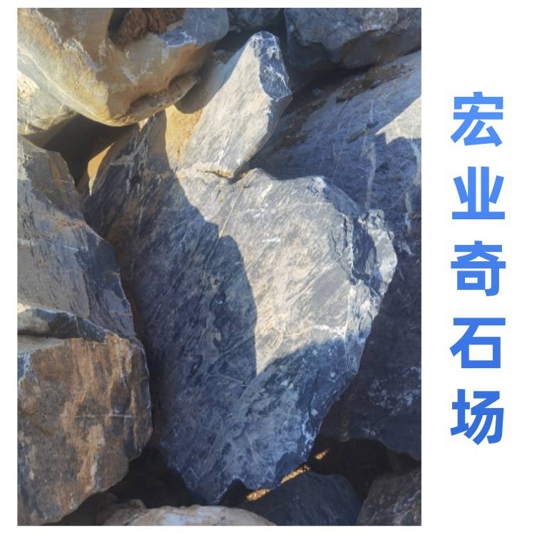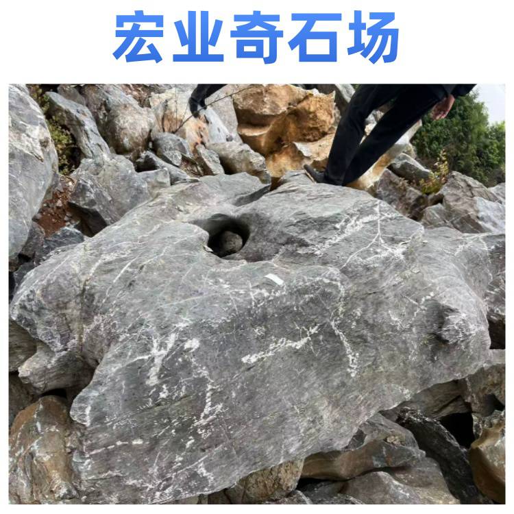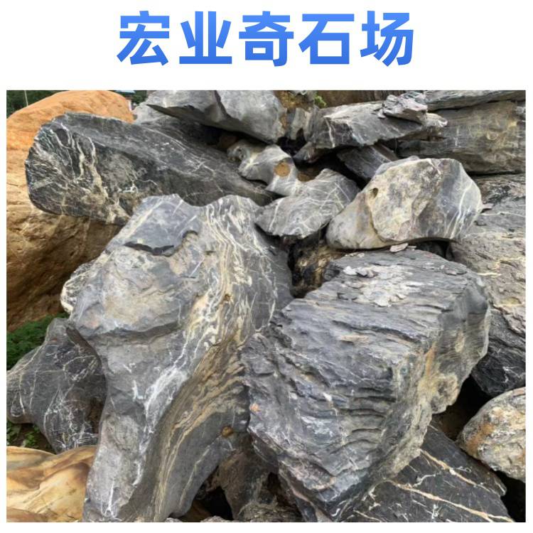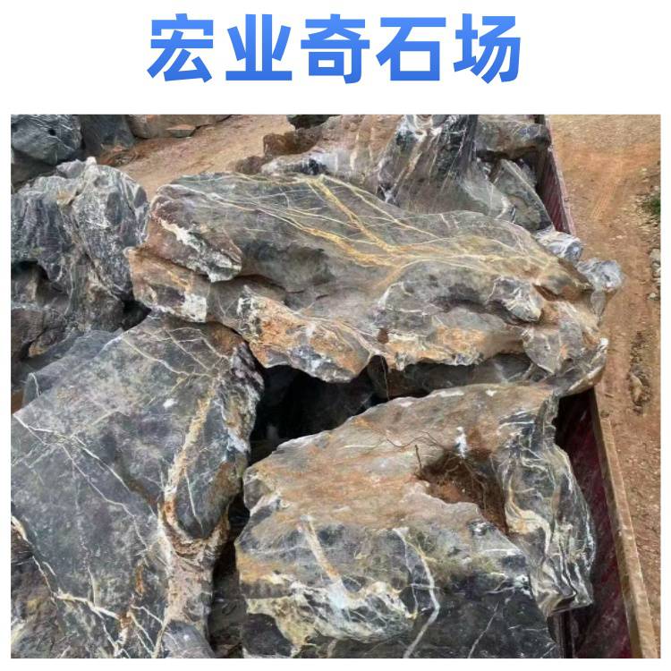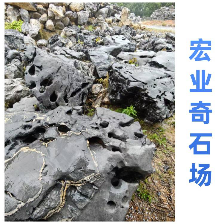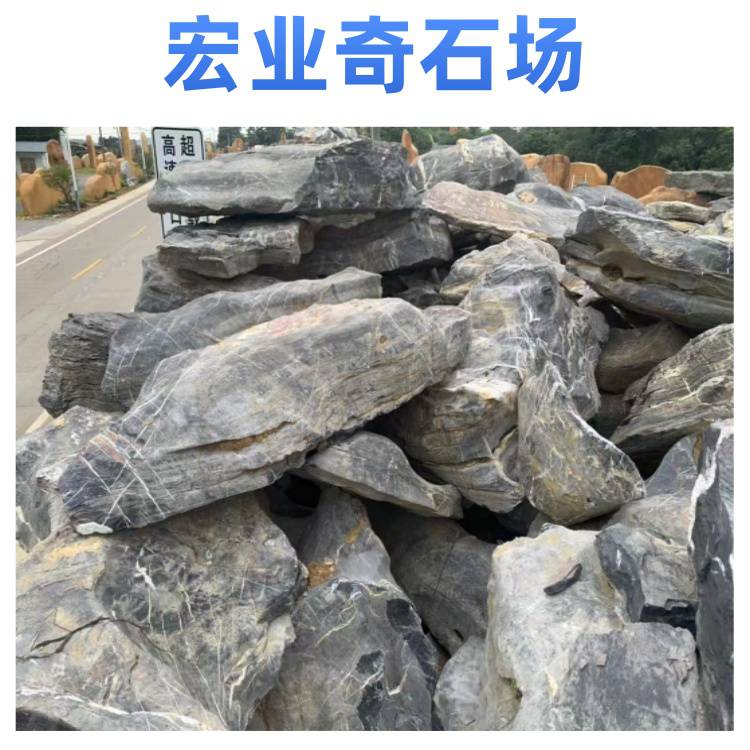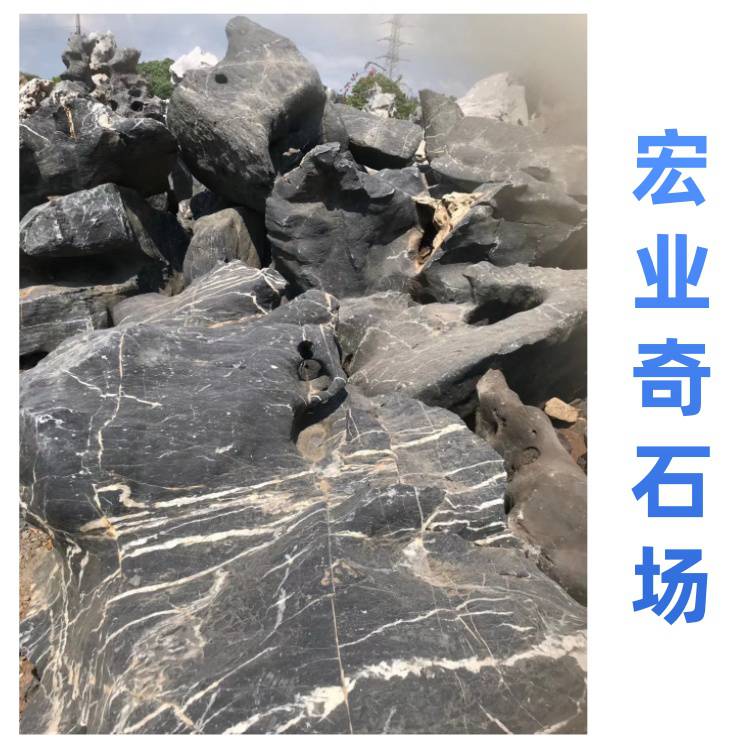 宏业奇石场的太湖石质地坚硬,纹理自然,颜色多为黑色,部分带有灰色调,表面有白色纹理,整体观赏性强。太湖石有多种规格,可满足不同园林景观建设的需求,无论是用于大型园林的假山堆叠,还是小型庭院的点缀,都能找到合适的石材。