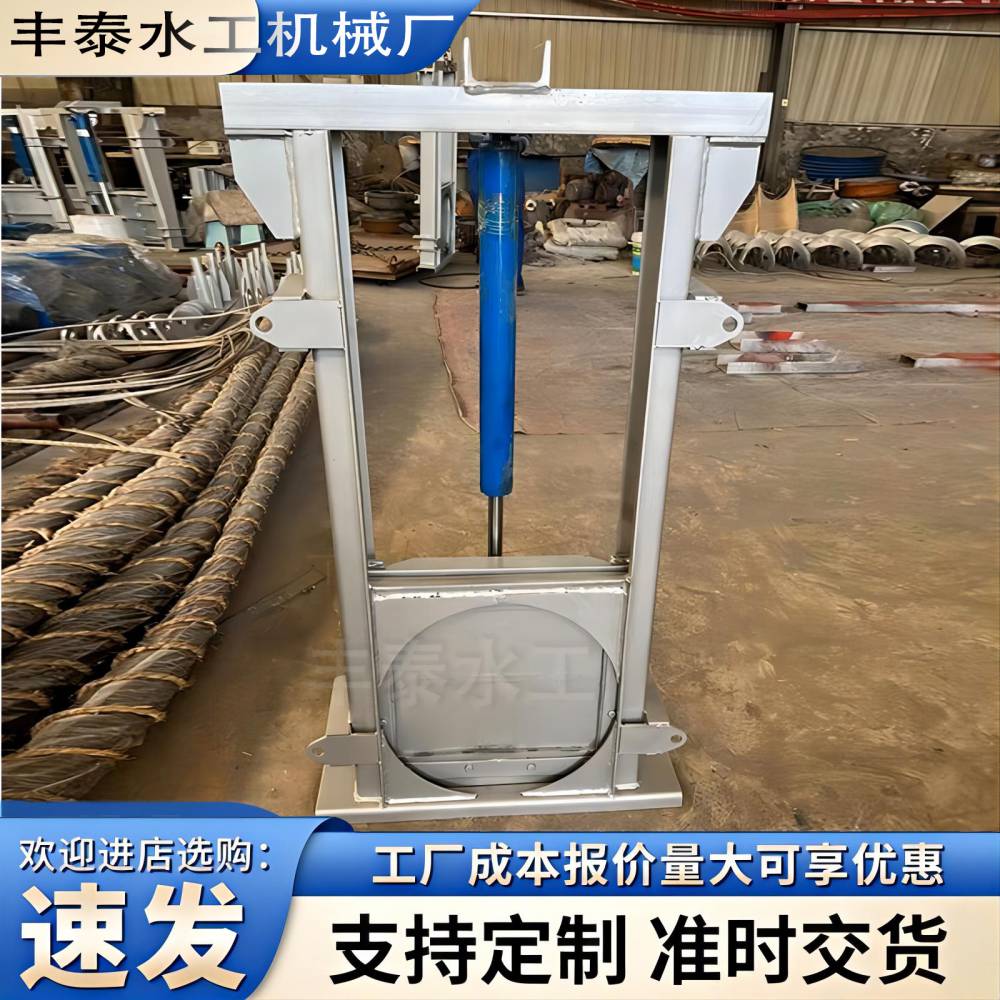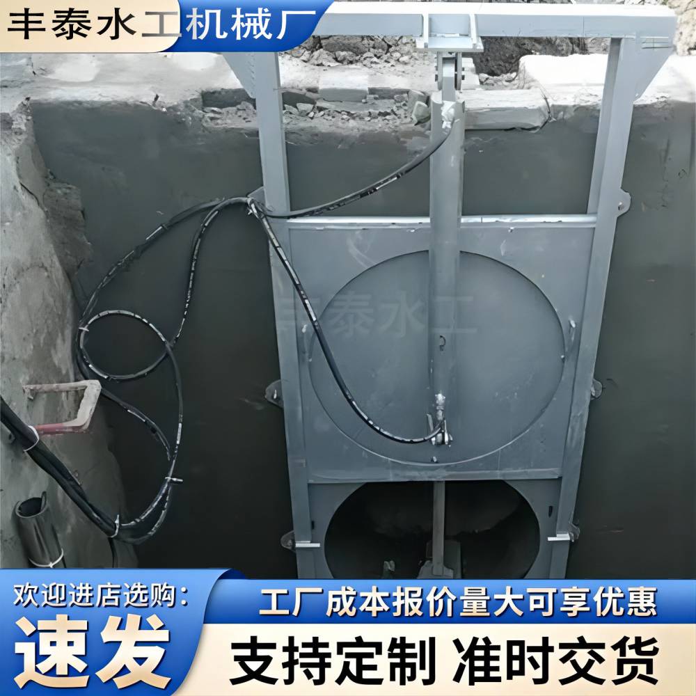 二、基础处理要求 墙面条件:安装墙面需光洁平整,预留洞口中心偏差≤5mm,孔洞尺寸误差≤2%。若采用附壁式安装,需用化学螺栓或预埋钢板固定,螺栓直径≥M16,埋深≥100mm。 排水措施:地下水位以下施工时,需在槽底设置集水坑,采用潜水泵持续排水,确保水位低于槽底0.5米后再进行管道铺设。 三、安装流程规范 整体就位:采用25吨以上吊车整体吊装,禁止分体安装。闸门开口中心与井内管口中心对齐,偏差≤3mm,用膨胀螺丝固定后需进行垂直度校正,偏差≤L/1000(L为闸门高度)。 导轨安装:导轨面加工精度需达到Ra3.2μm,与门框连接部位采用定位销防错位,螺栓紧固力矩需达到设计值(通常为120-150N·m),并用扭矩扳手分两次拧紧。 液压系统:液压缸安装倾斜度≤0.5°,油管连接需采用卡套式接头,弯曲半径≥5倍管径。液压站油箱需加注46#抗磨液压油,油位达到油标2/3处。
