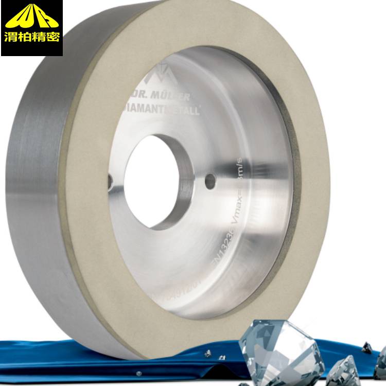 德国Dr.Muller砂轮-参数: 材料:金刚石 工作线速度:16-19 规格:1a1 d125 u10 x12.5 h20 d64 c100 powerone 结合剂:powerone(介于树脂和金属之间) 粒度:d64 适用范围:cnc磨床加工硬质合金快速开槽 形状:平形砂轮,圆度<0.02 圆柱度<0.01,工艺:烧结 德国Dr.Muller砂轮,金刚石砂轮-主要型号: Airmax,Striker Centerless,Reinecker Ferox,Rollomatic Silence Pro,XT-790 Stellaris,Strata