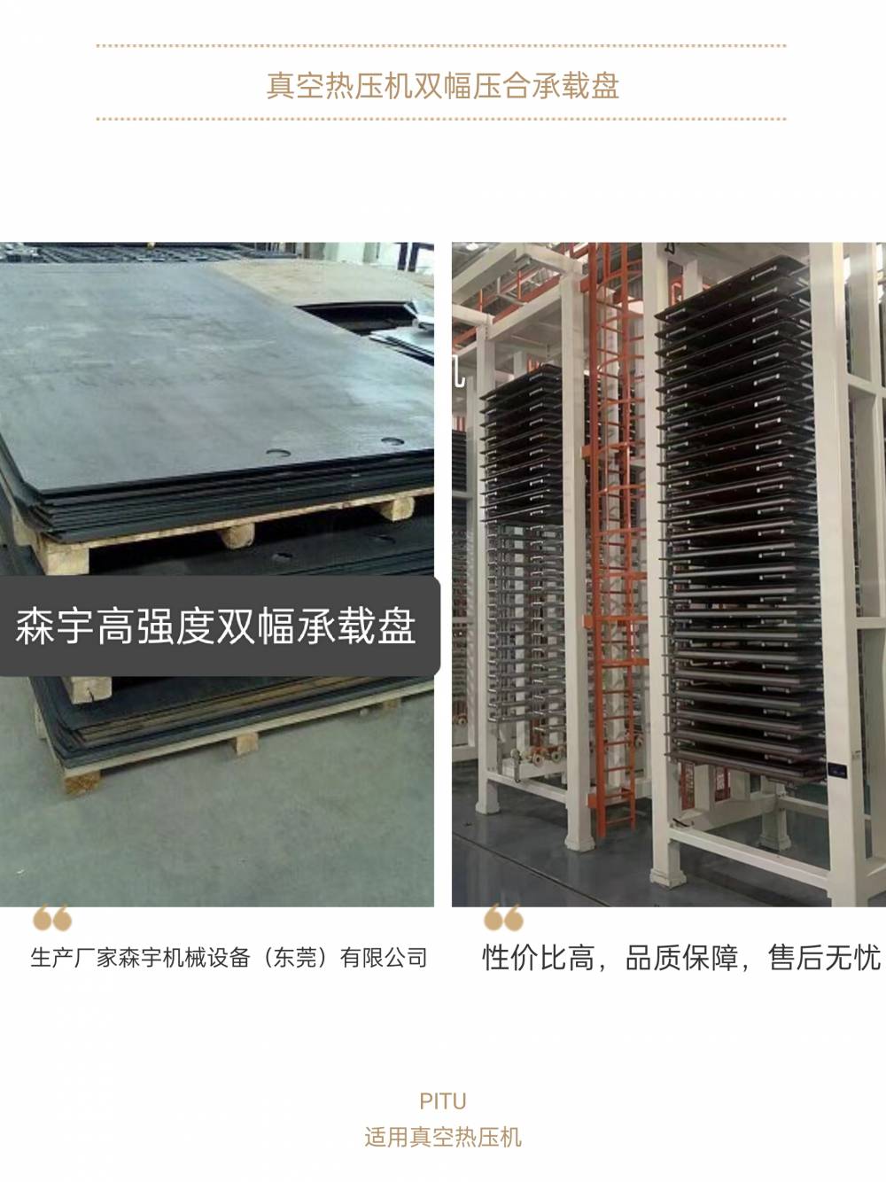 森宇机械设备(东莞)有限公司的经营项目: ※压机上盖板、压合底盘底板、TU430压合承载盘、PCB和CCL厂用层压压合承载盘、全硬化PIN LAM压合承载盘、瑞钢压合承载盘、MASS LAM压合承载盘、双副承载盘、托盘及高温合金钢TL1200加热盘保护板防磨板; ※压机承载盘上的防滑块、止滑块、加长尾防滑弹簧夹、挡块;PIN LAM压合承载盘PIN钉销钉衬套; ※日本冶金压合钢板、SUS630压合钢板、NTK630层压镜面钢板、NSS431DP2压合钢板、德国压合钢板、SUS420热压镜面钢板、PIN LAM 压合钢板、旧压合钢板裁切翻磨研磨返磨及表面处理; ※承载盘整平、应力及技术改造及表面处理; ※可提供代工工厂服务,只需您来图纸或来样以及技术要求,我们依图定制各种规格适用于博可活全大田连结北川恒达威迪常山液压精科迪普霖朋欧蒙众然等国内和进口真空热压机压合承载盘(上盖板+下底板)以及层压钢板/热压钢板/压合钢板以及压合防滑挡块弹簧夹。生产厂家,交期准时,品质保障,售后无忧,量大***。森宇负责品质和售后,合作共赢,选择合作满意的代工工厂森宇机械设备(东莞)有限公司。