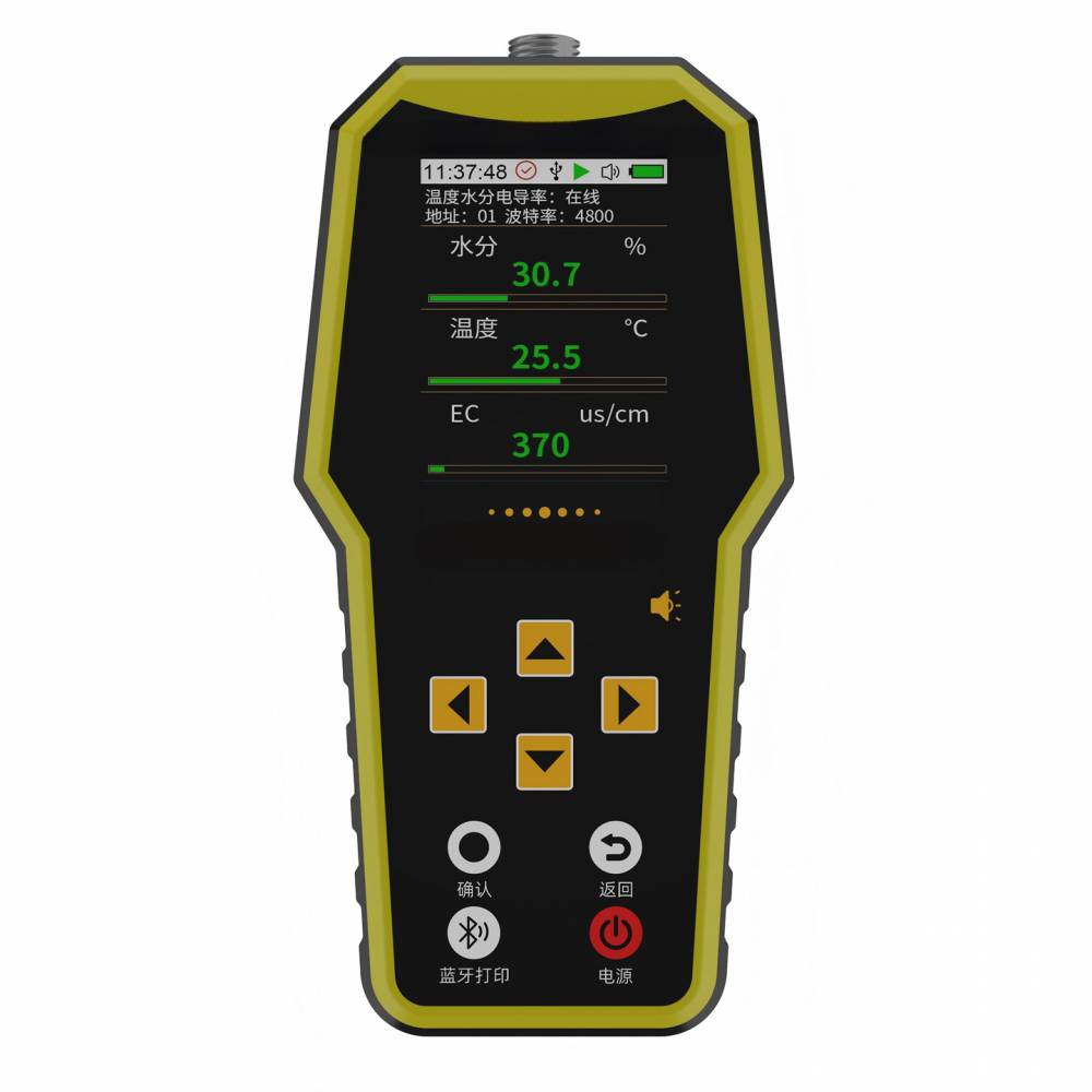 便携式土壤电导率测试仪 型号:M608-TRREC库号:M411214 该记录仪应用于旱作节水灌溉、精细农业、林业、地质勘探、植物培育、水利等领域。 参数 供电方式:电池供电(5000mAh 锂电池,Type-C 口供电为 5VDC) 显示方式:2.8 寸液晶显示屏 数据存储:100W 条数据 充电时间:≤8h 工作环境:温度-20℃-60℃;湿度<95%RH 无结露 可接设备:1-4 个 ModBus 设备组合 通信协议:ModBus-RTU 协议 工作电压:DC 4.2V 待机时间:大于 8h 连续 尺寸:174*88.5*35 mm 重量:284g 电导率参数 量程:0-20000us/cm 分辨率:10uS/cm 精度:0-10000μS/cm范围内为+3%FS;10000-20000uS/cm 范围内为+5%FS(棕壤,60%RH,25℃C)