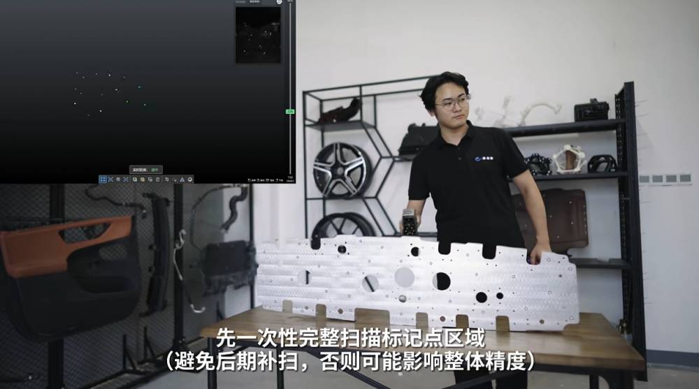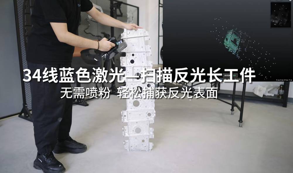 一次搞定 1米+ 反光大型薄壁件 —— 无需喷粉、无需正反手动拼接 思看3DeVOK MT三维扫描仪搭载 34 线蓝色激光扫描反光大尺寸工件,采用标记点拼接模式,精度可达 0.04 mm;具备高材质适应性,面对反光件无需喷粉,无惧复杂材质表面。