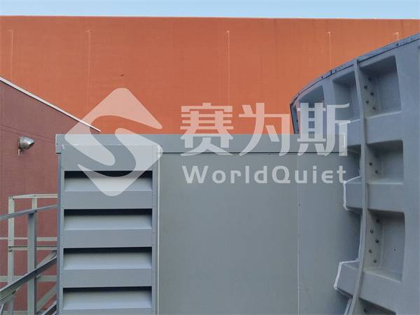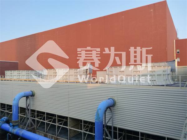 三、定制综合治理方案 技术团队通过细致的现场勘察与声学分析,针对不同噪声源及传播路径,制定了“分源治理、综合防控”的个性化方案: (一)风机气动噪声综合治理 在风机主要噪声辐射面——西侧,设计并安装了定制化的隔声屏障。该屏障采用模块化高隔声量材料,能有效阻隔并衰减风机运行时产生的强大气流噪声。 (二)电机电磁与机械噪声治理 为每台电机量身打造模块式隔声罩。隔声罩以钢结构为框架,在******隔声效果的同时,科学设计散热结构,确保电机通风散热不受影响。模块化设计也便于日常维护和大修时快速拆装。 (三)顶部排风噪声治理 在冷却塔出风口区域加装吸隔声屏障。此措施巧妙地增大了声波传播路径上的“声影区”范围,使从顶部排出的高频噪声在向厂界传播前得到有效衰减。 (四)进风优化与传播阻隔 在冷却塔的南、北两侧主要进风面,安装专业进风消声器,在确保冷却塔通风需求不受影响的前提下,从源头削减进风噪声。东西两侧分别安装不同型号的消声百叶,进一步阻隔噪声向外传播。