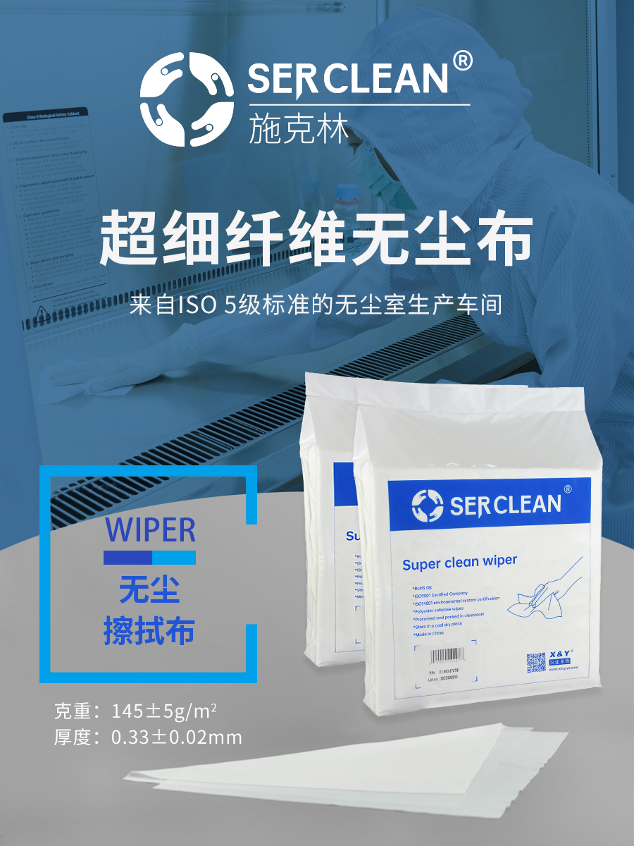 2. 兴业卓辉无尘布:专业品质,值得信赖在众多品牌中,兴业卓辉旗下施克林SERCLEAN品牌的超细纤维无尘布凭借以下特点***: (1) 高纯度纤维——采用优质聚酯超细纤维,无硅油、无添加剂,确保擦拭***。 (2) 多种封边工艺——提供激光切割、超声波封边等不同工艺,满足不同洁净等级需求。 (3) 严格品控——每批次产品均经过颗粒检测、吸液率测试和擦拭性能验证,符合*** 14644、IEST标准。 (4) 多样化选择——提供不同克重、尺寸和包装方式,适配电子、医疗、光学等多种行业需求。 3. 适用场景推荐半导体 & 电子行业:擦拭晶圆、PCB板、显示屏,避免微粒污染。 光学 & 精密仪器:清洁镜头、传感器、激光设备,无划痕残留。 医疗 & 实验室:用于无菌环境擦拭,防止交叉污染。 汽车 & 航空航天:清洁精密零部件,确保装配无瑕疵。
